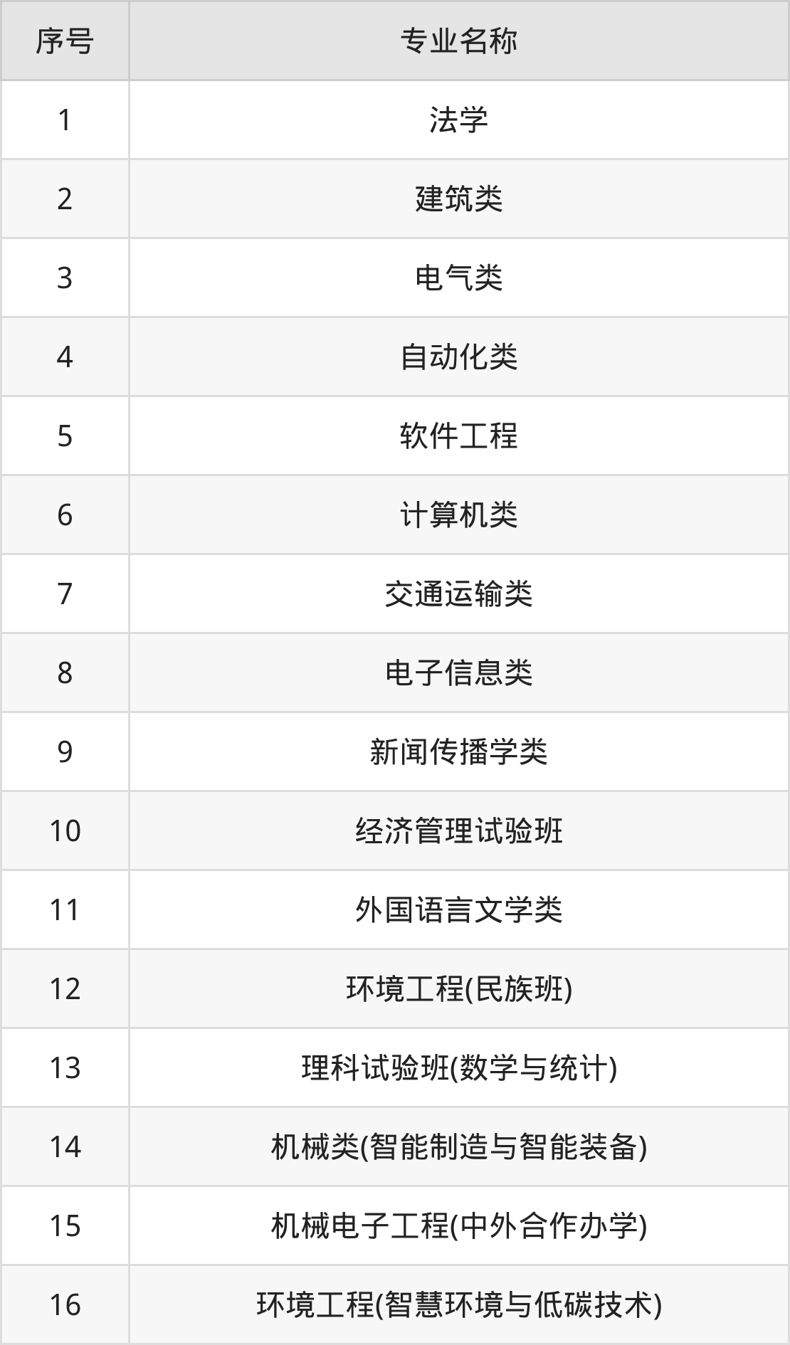 物理类(理科)本科招生专业:法学、电气类、建筑类、软件工程、计算机类、自动化类、电子信息类、交通运输类、经济管理试验班、环境工程(民族班)等。