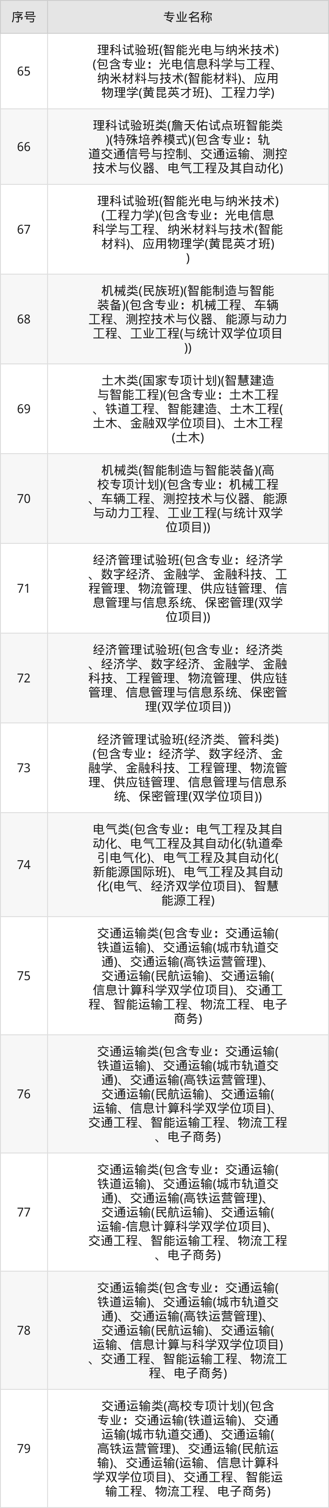 目前,北京交通大学公布了2024年本科招生专业,共79个。