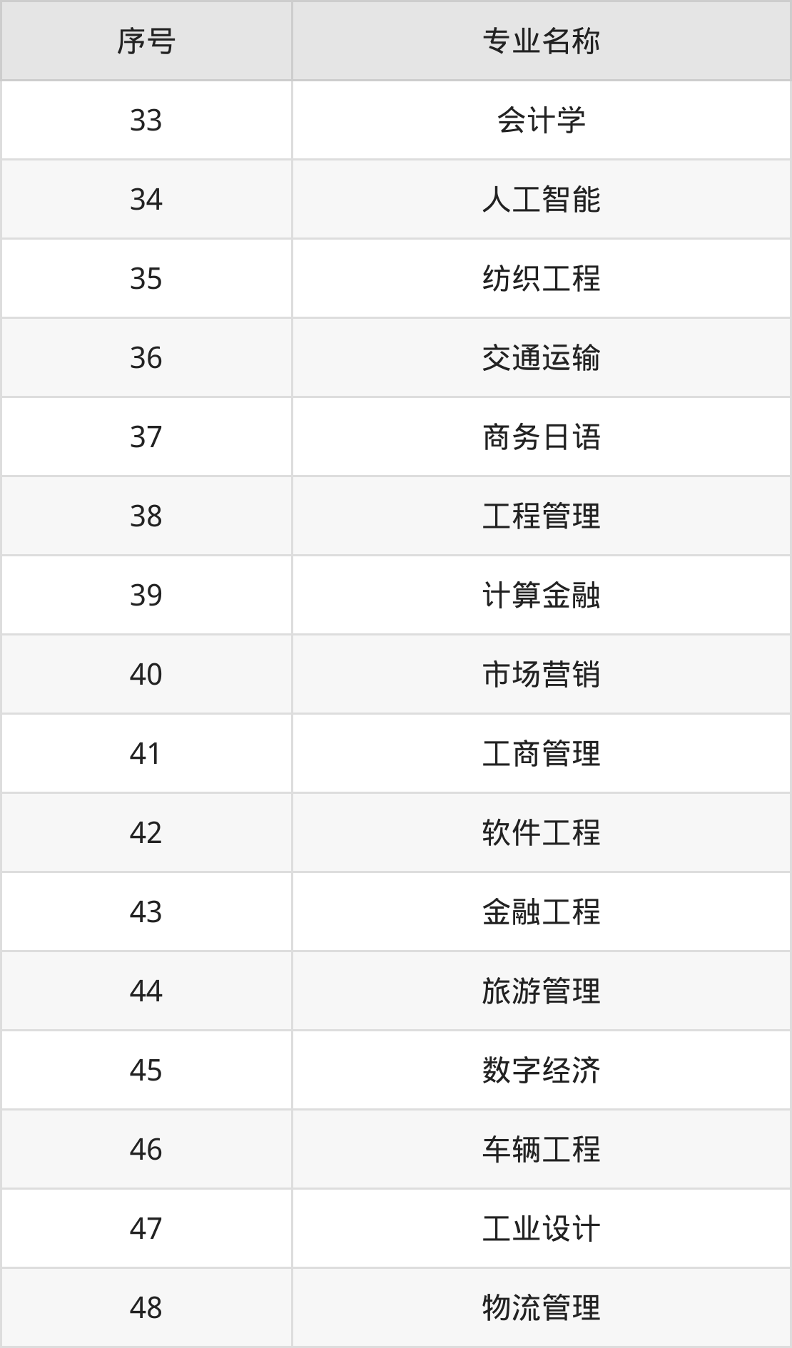 物理类(理科)本科招生专业:英语、自动化、护理学、数字经济、交通运输、纺织工程、计算金融、工程管理、工业设计、工商管理等。