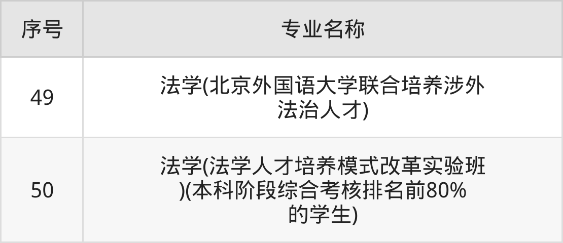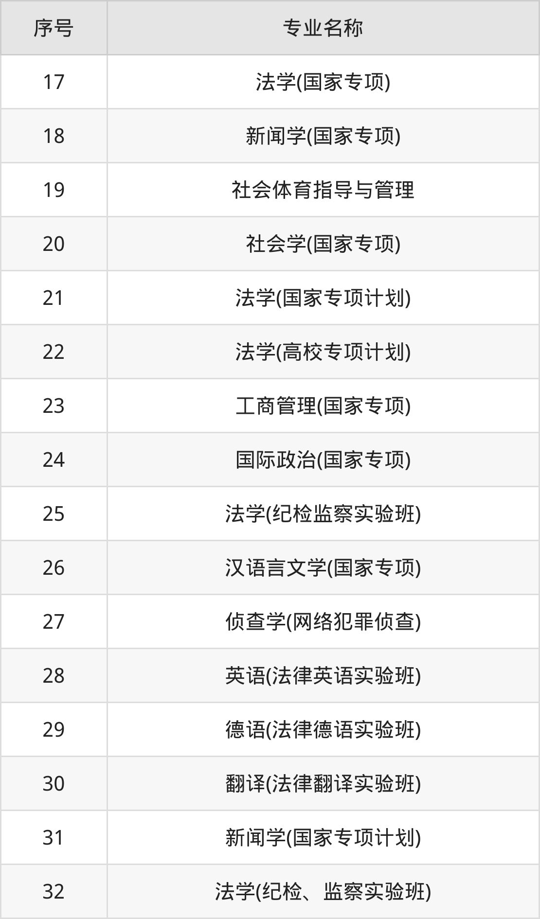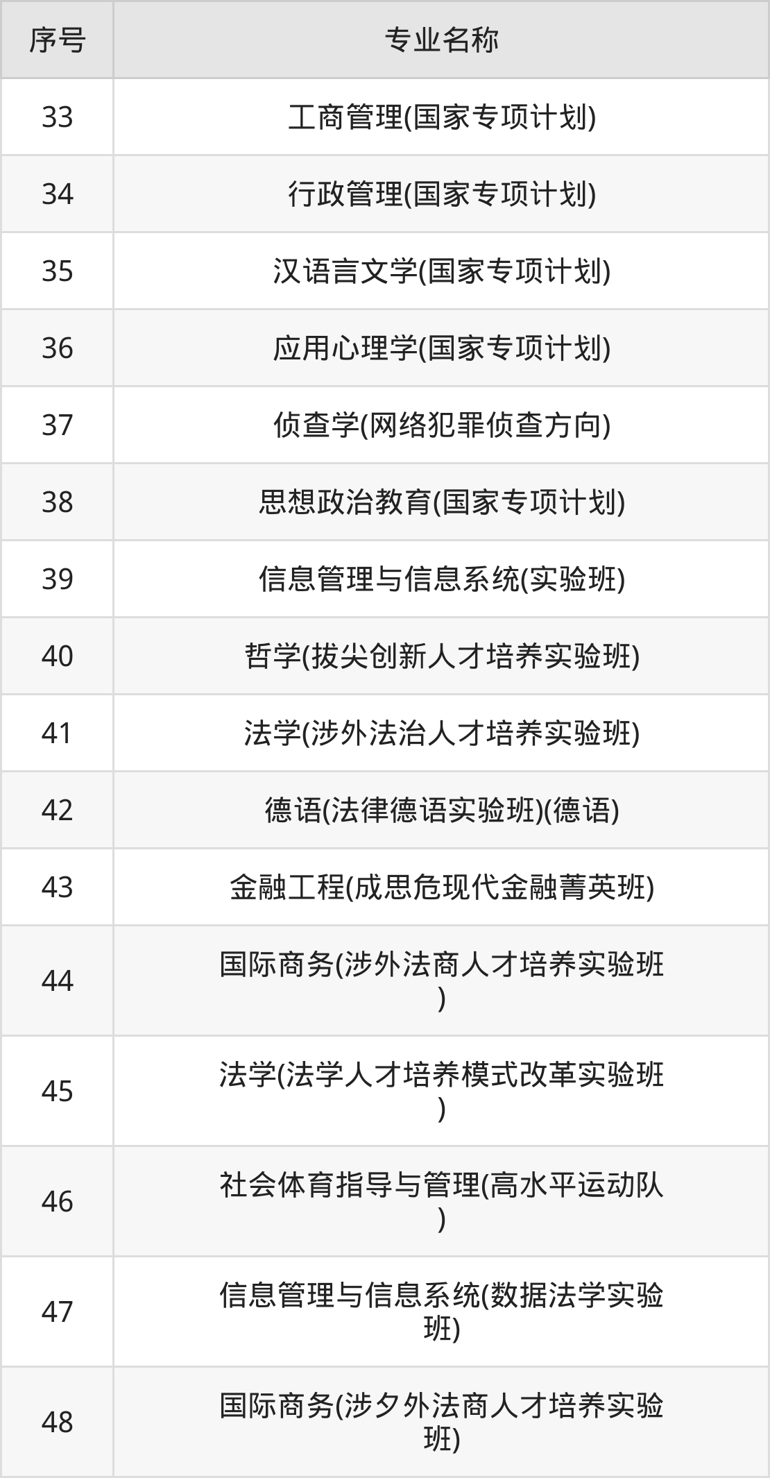 目前,中国政法大学公布了2024年本科招生专业,共50个。