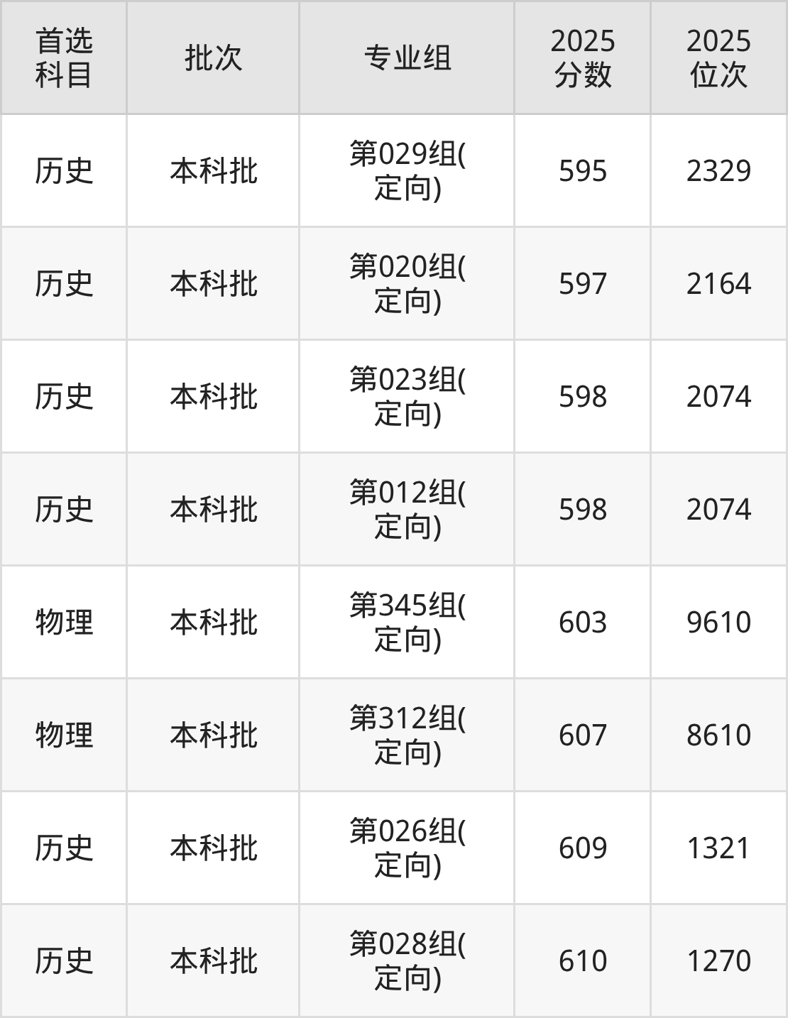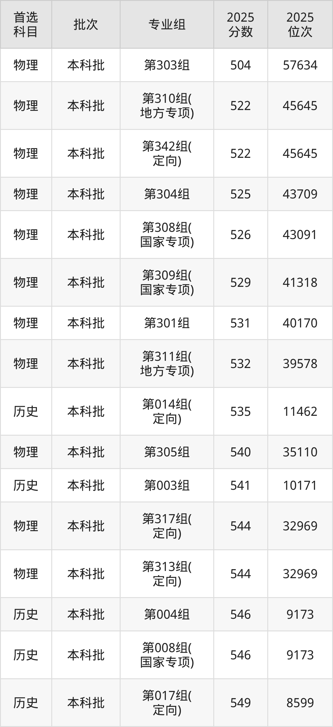 从2025年山西大学在山西省内的录取分数线来看,本科批录取分数线都在500分以上,录取分数线最高的是第028组(定向),2025年最低分为610分;录取分数线最低的是第303组,2025年最低分为504分。