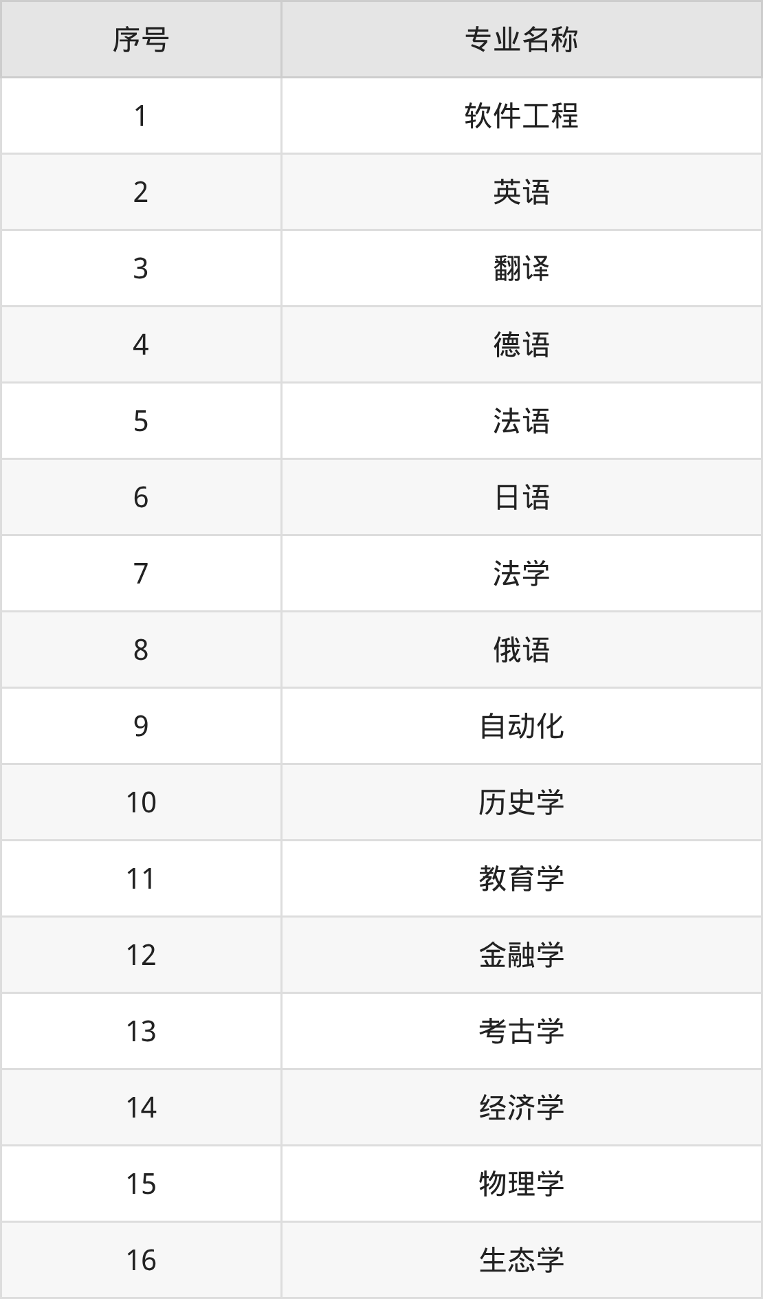 物理类(理科)本科招生专业:软件工程、法学、英语、自动化、生态学、经济学、金融学、统计学、教育学、会计学等。