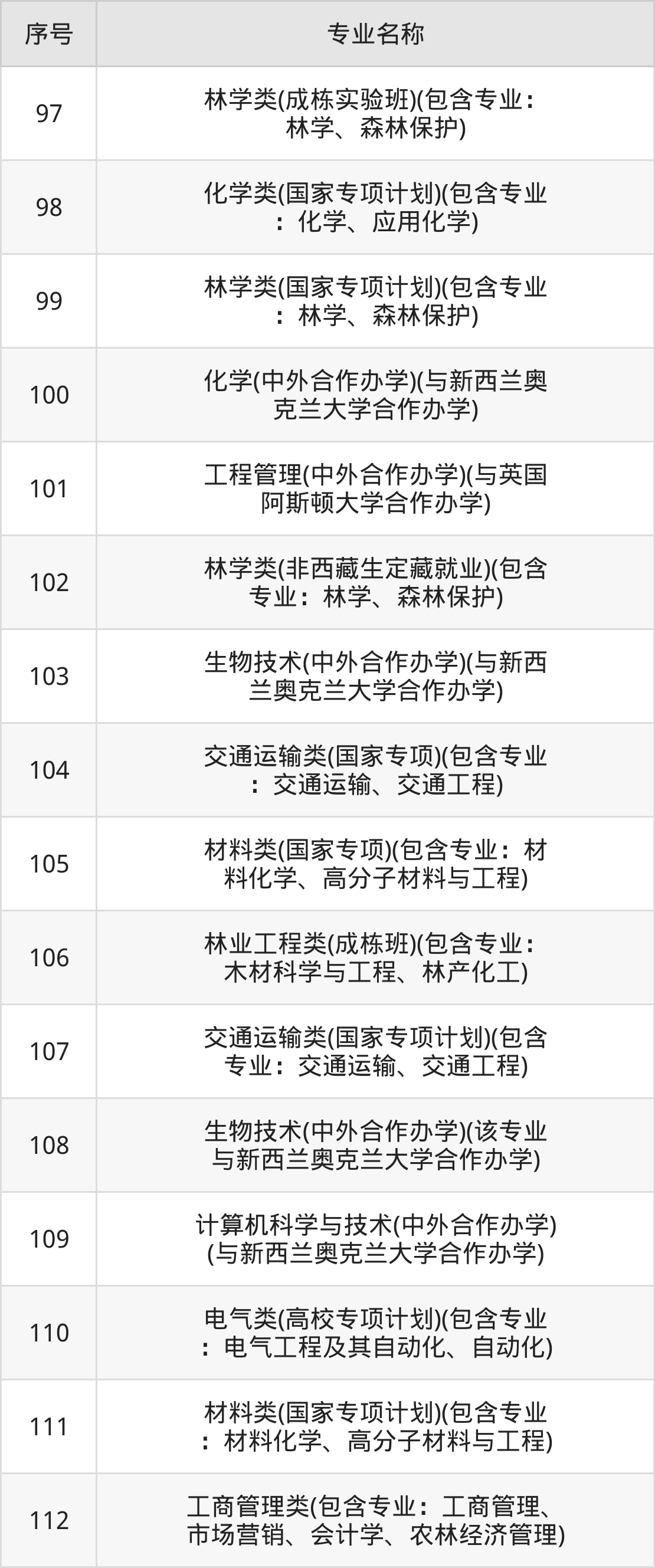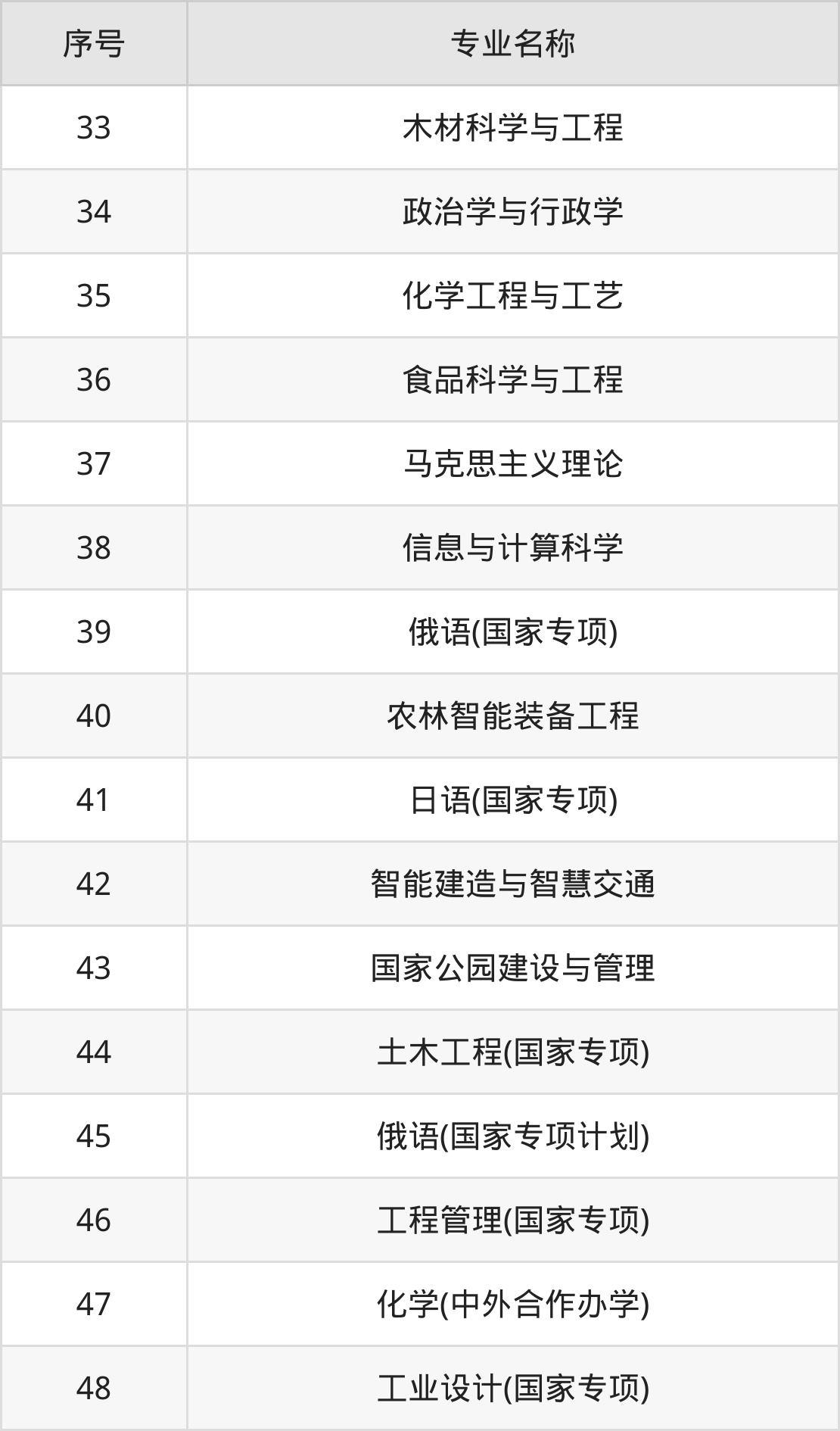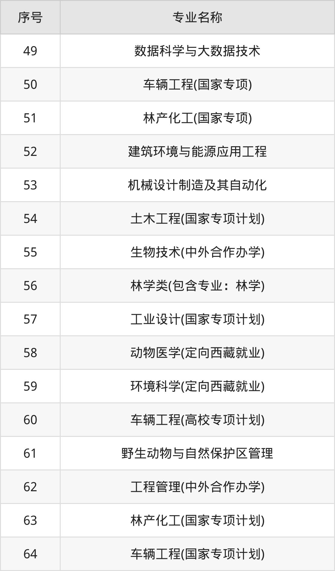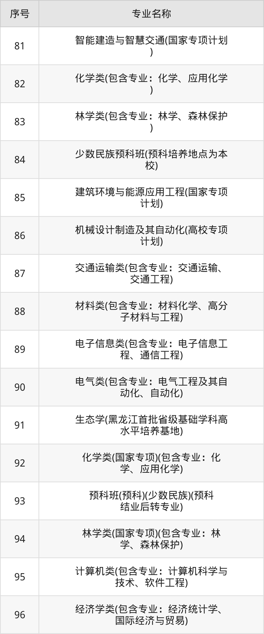 目前,东北林业大学公布了2024年本科招生专业,共124个。