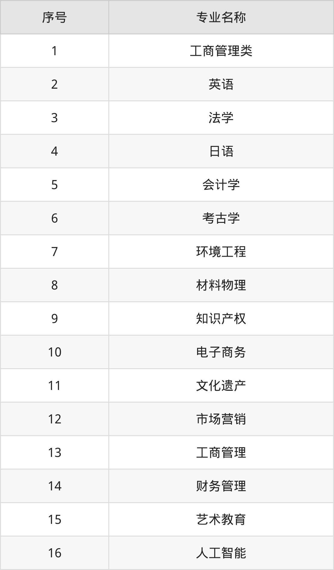 物理类(理科)本科招生专业:法学、日语、英语、会计学、工商管理、市场营销、材料化学、环境工程、知识产权、财务管理等。