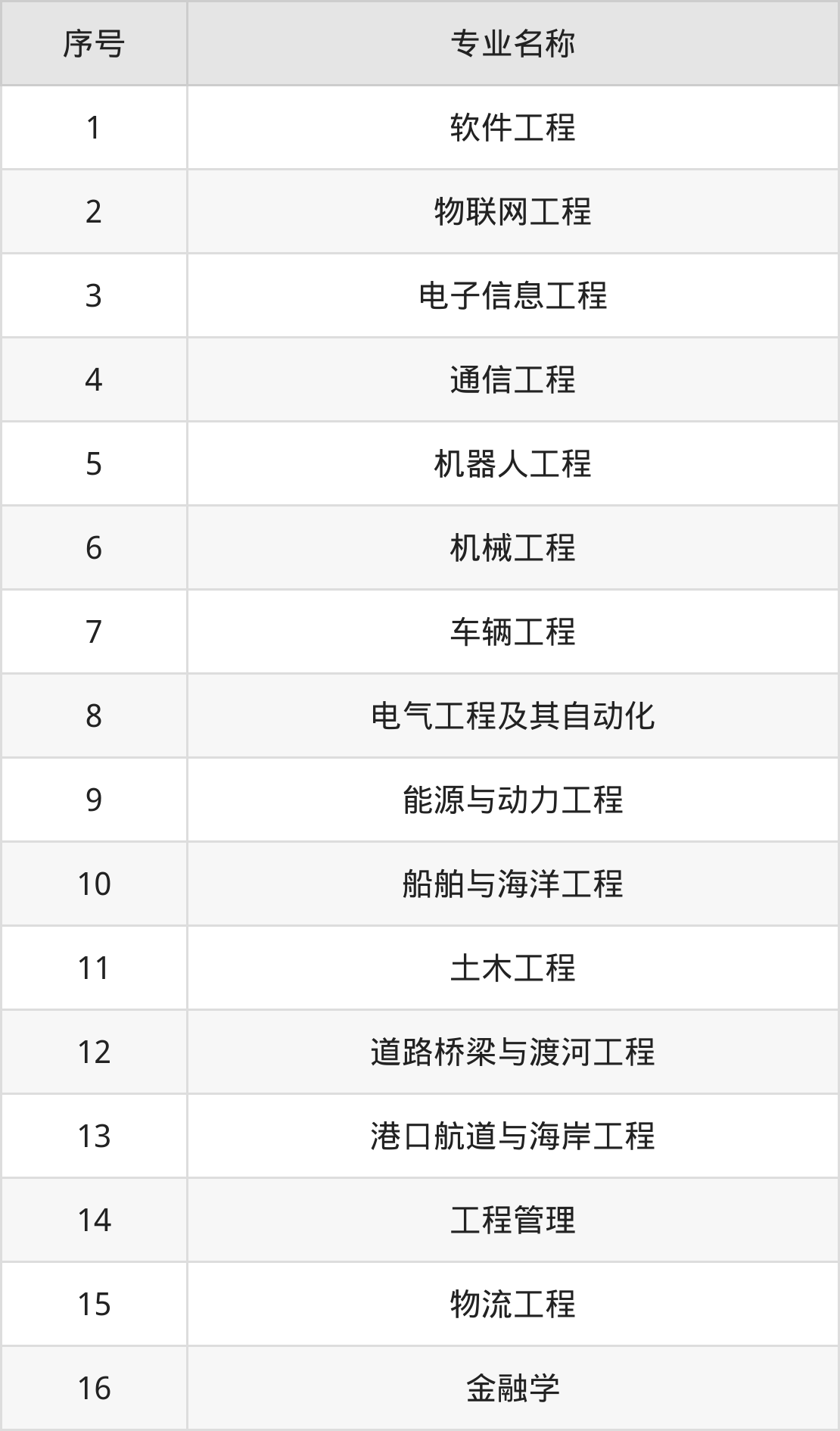 物理类(理科)本科招生专业:软件工程、物联网工程、电子信息工程、通信工程、机器人工程、机械工程、车辆工程、电气工程及其自动化、能源与动力工程、船舶与海洋工程等。
