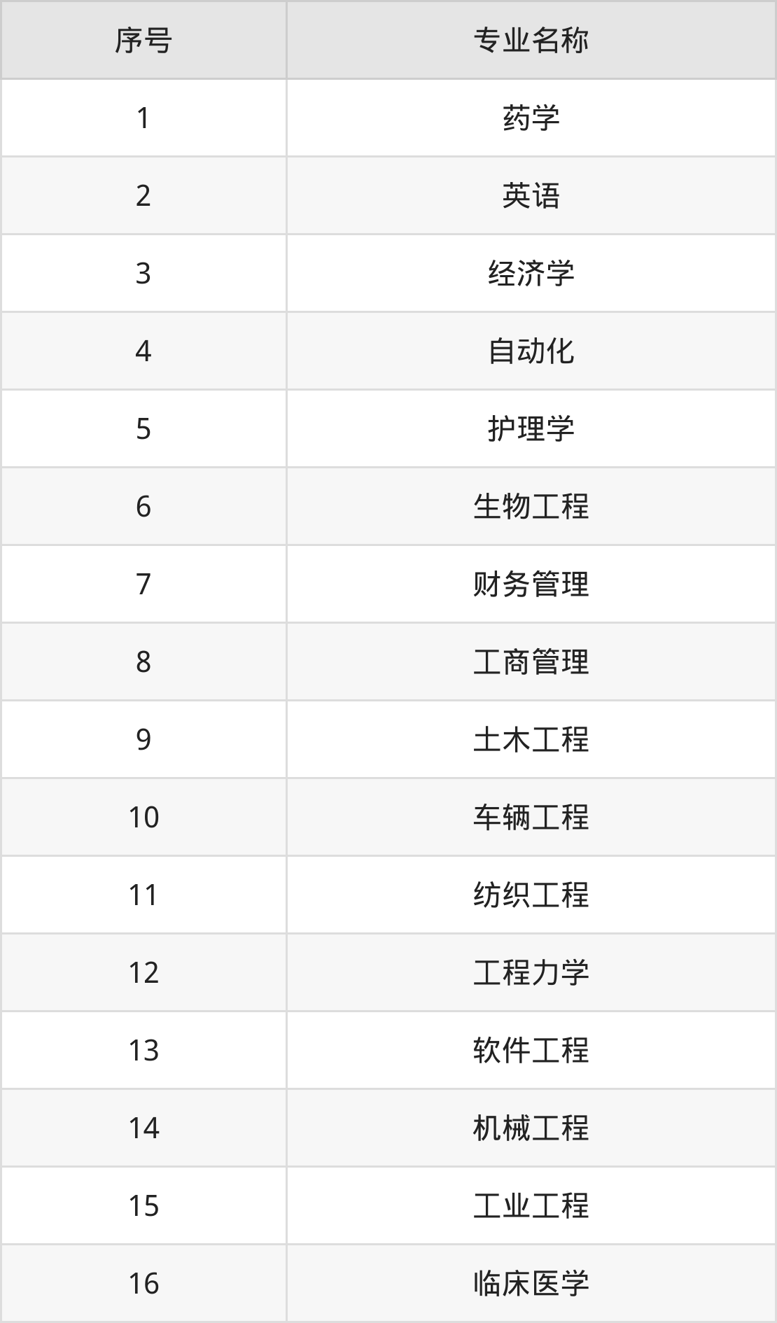 物理类(理科)本科招生专业:英语、药学、自动化、护理学、经济学、纺织工程、工程力学、临床医学、土木工程、生物工程等。