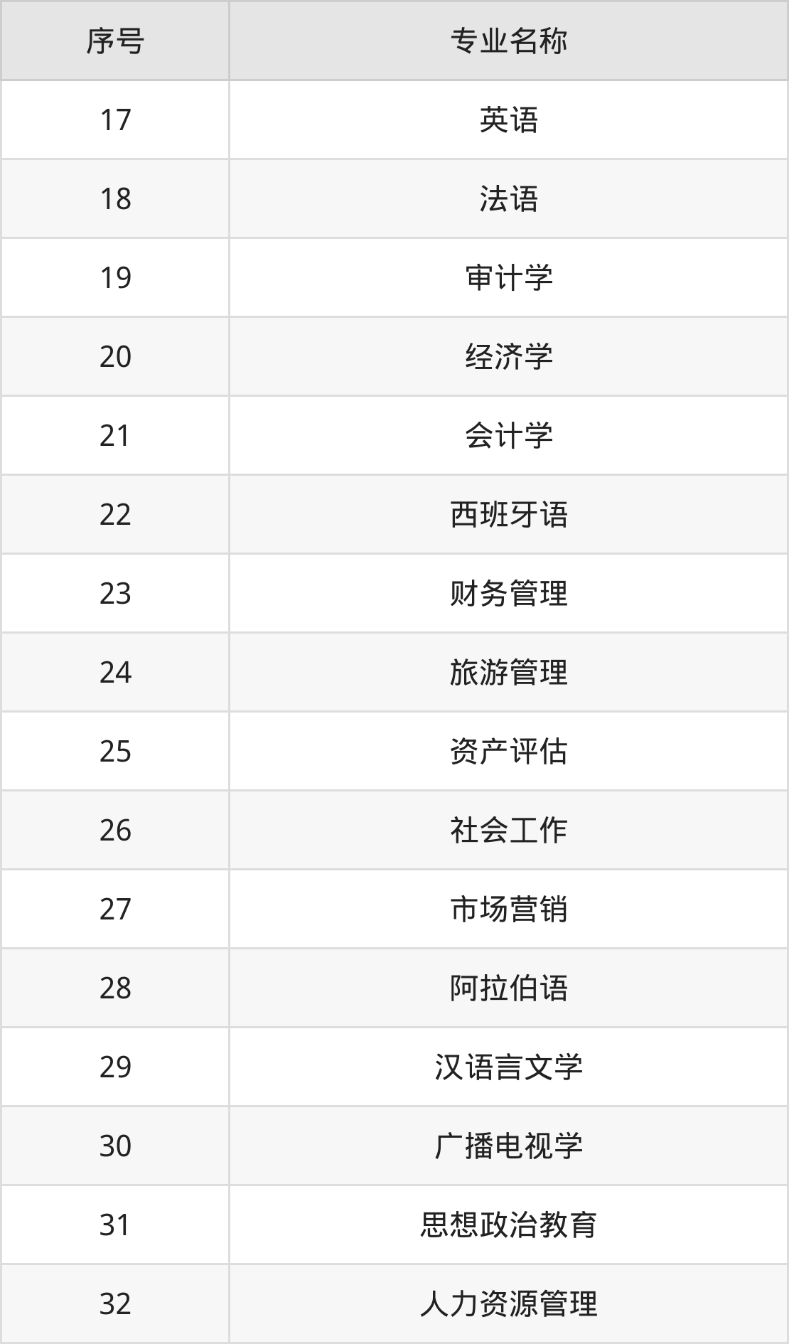 历史类(文科)本科招生专业:英语、法语、会计学、审计学、社会工作、资产评估、西班牙语、财务管理、阿拉伯语、汉语言文学等。