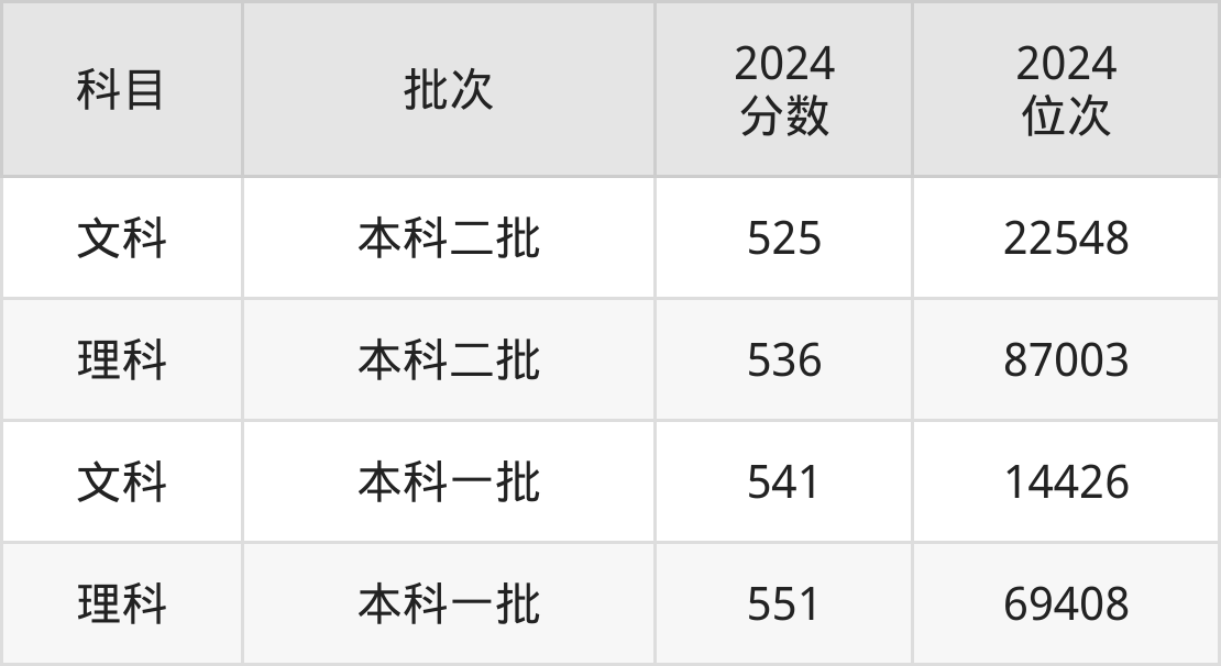 从2024年四川轻化工大学在四川省内的录取分数线来看,本科批录取分数线都在520分以上,录取分数线最高的是理科,2024年最低分为551分;录取分数线最低的是文科,2024年最低分为525分。