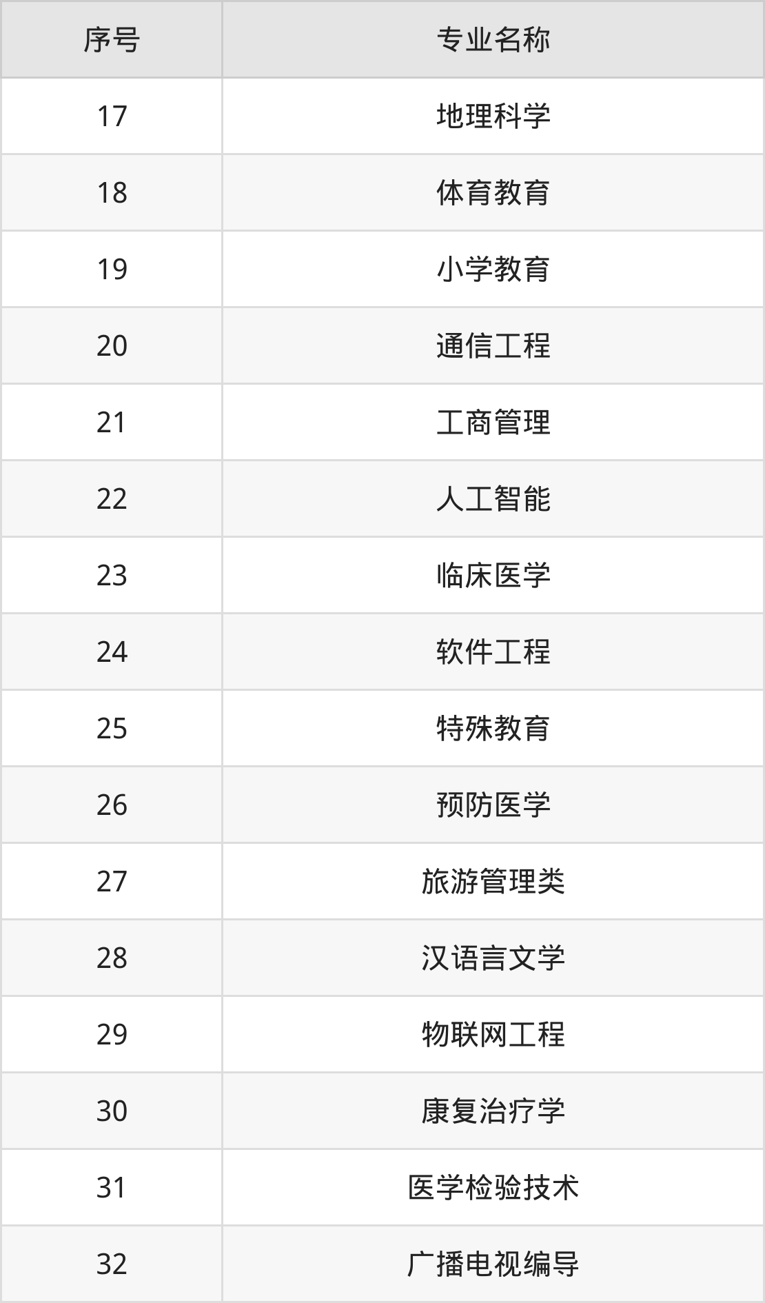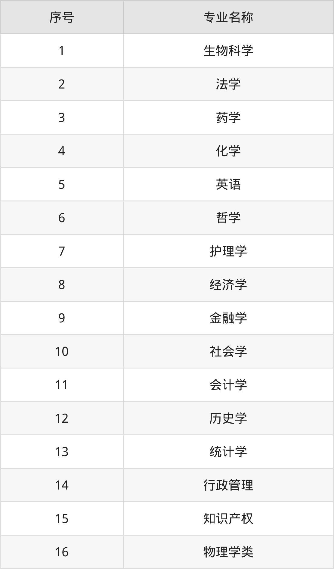 历史类(文科)本科招生专业:法学、哲学、英语、护理学、社会学、会计学、金融学、经济学、历史学、地理科学等。