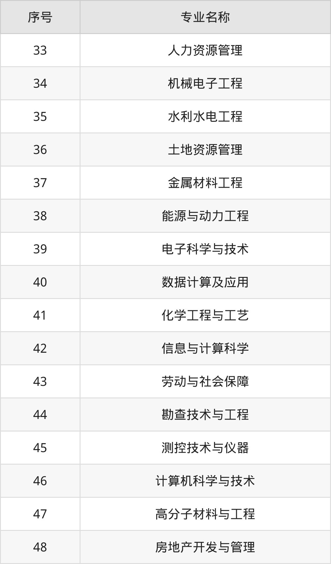 历史类(文科)本科招生专业:英语、法学、会计学、经济学、城市管理、财务管理、工程造价、金融工程、土地资源管理、人力资源管理等。
