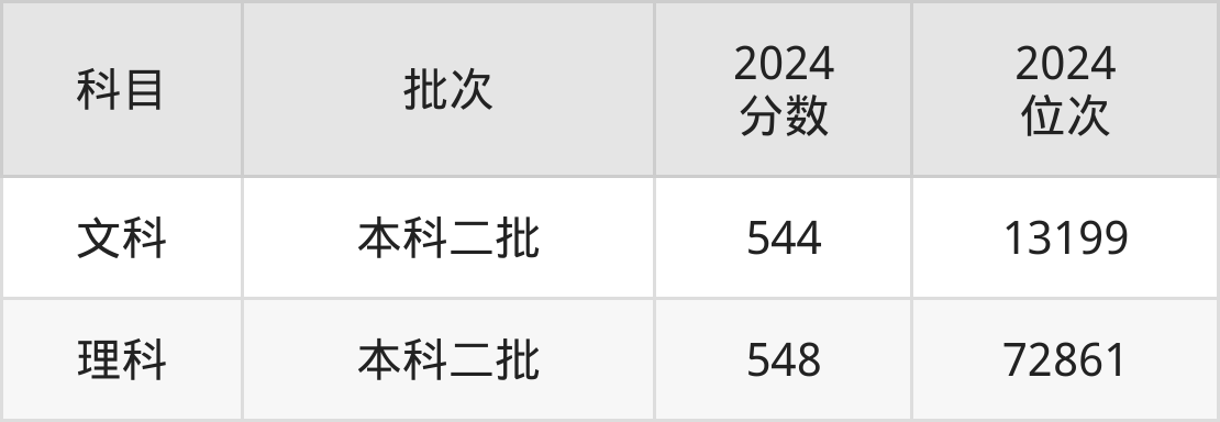 从2024年四川警察学院在四川省内的录取分数线来看,本科批录取分数线都在540分以上,录取分数线最高的是理科,2024年最低分为548分;录取分数线最低的是文科,2024年最低分为544分。