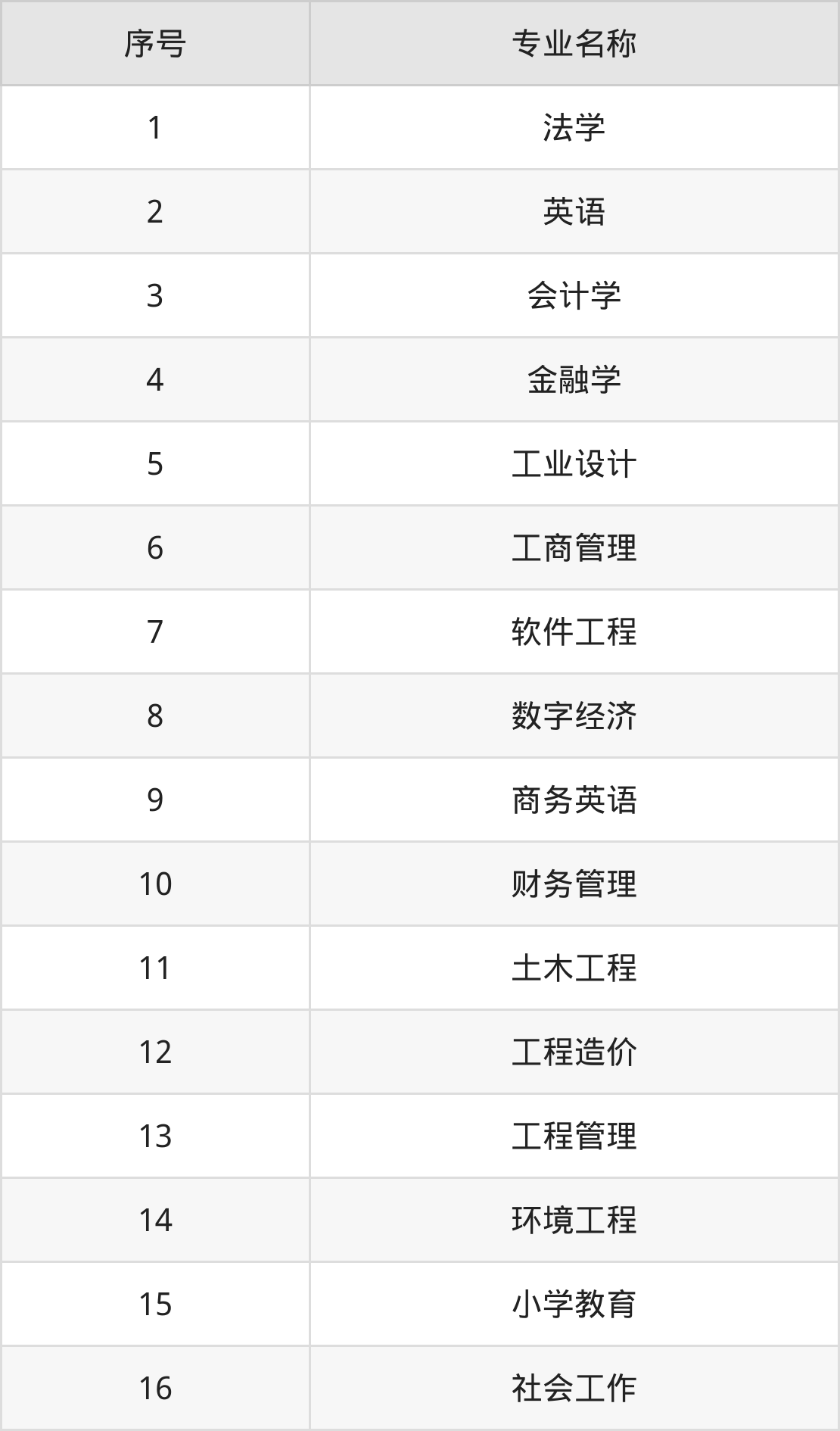 物理类(理科)本科招生专业:英语、法学、会计学、金融学、电子商务、数字经济、工程管理、工程造价、工业设计、环境工程等。