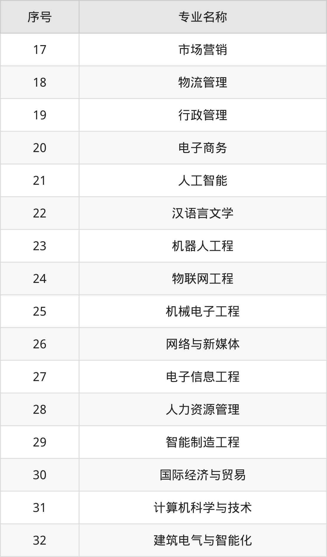 历史类(文科)本科招生专业:法学、英语、会计学、金融学、物流管理、商务英语、小学教育、电子商务、财务管理、市场营销等。