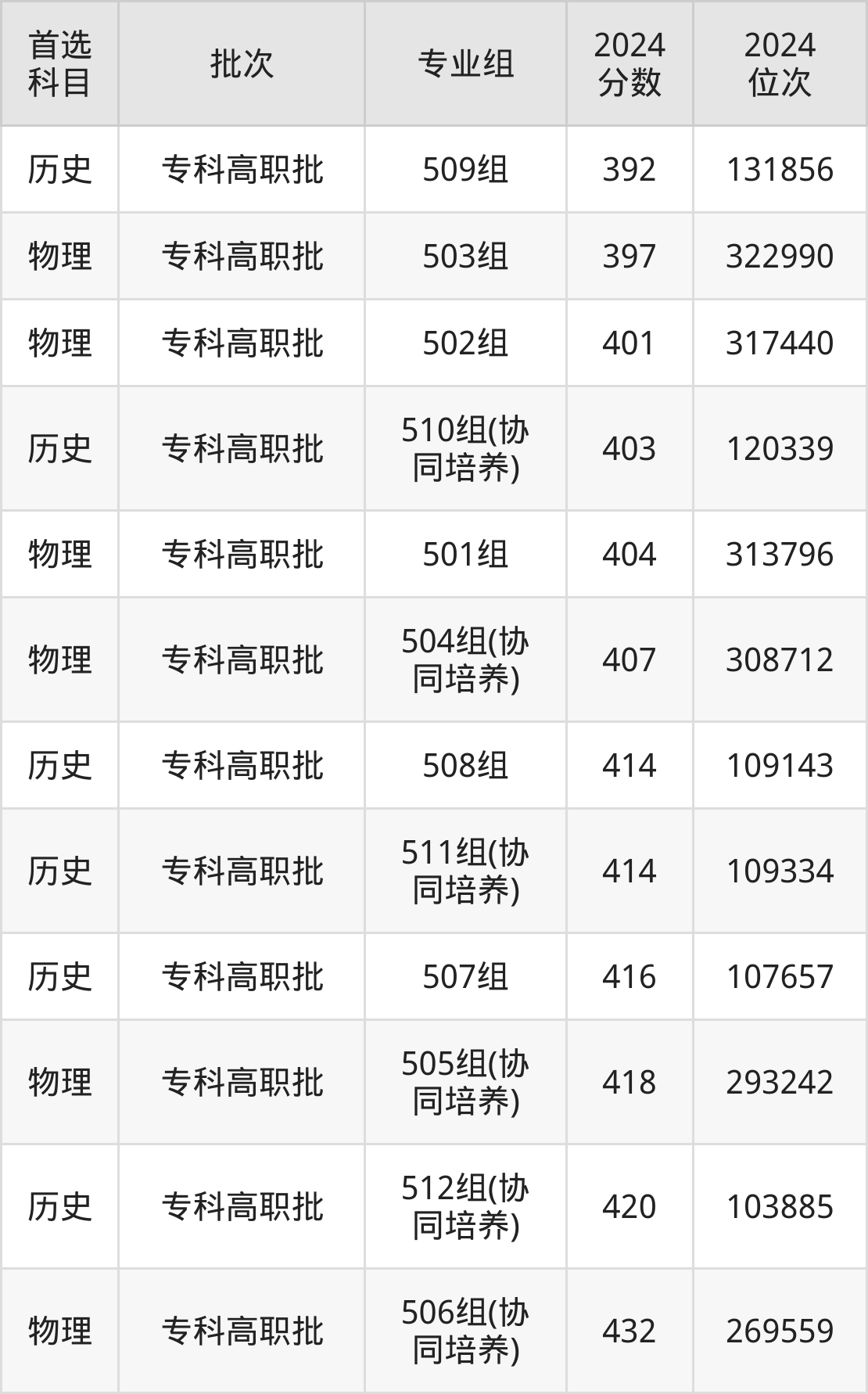 2024年广东建设职业技术学院在广东省内专科批的录取分数线都在390分以上,在历史类的录取分数线在392分-420分之间;物理类的录取分数线在397分-432分之间。