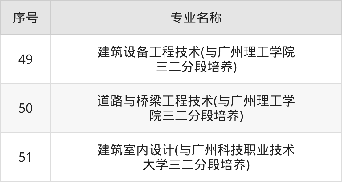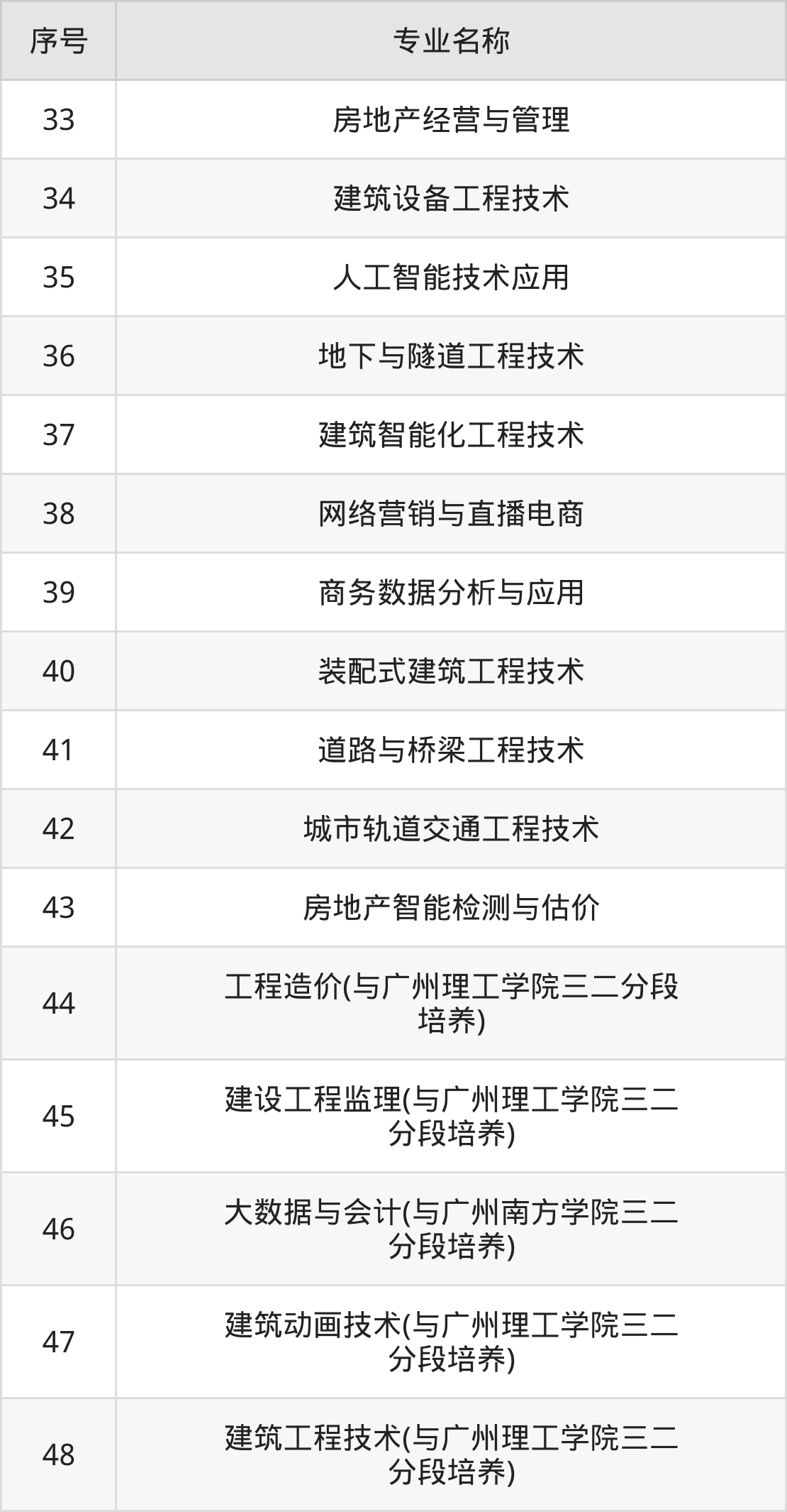 目前,广东建设职业技术学院公布了2024年专科招生专业,共51个。