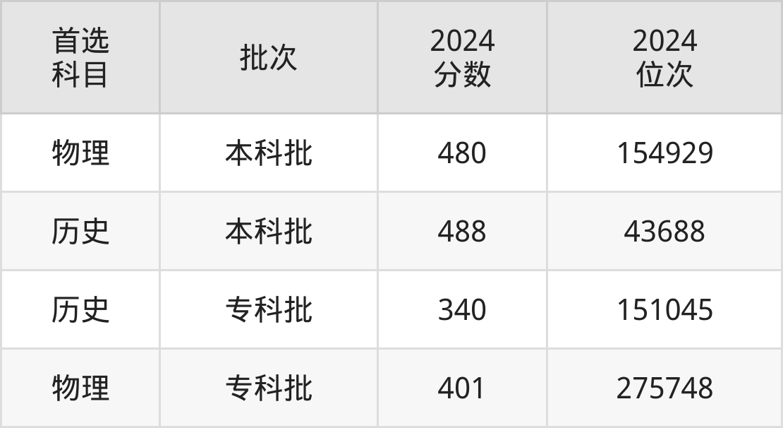 从2024年河北工业职业技术大学在河北省内的录取分数线来看,本科批录取分数线都在480分以上,录取分数线最高的是历史类,2024年最低分为488分;录取分数线最低的是物理类,2024年最低分为480分。