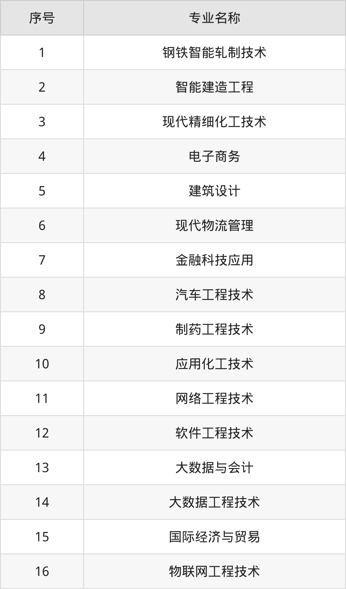 物理类(理科)本科招生专业:钢铁智能轧制技术、智能建造工程、现代精细化工技术、建筑设计、电子商务、软件工程技术、汽车工程技术、金融科技应用、大数据与会计、制药工程技术等。