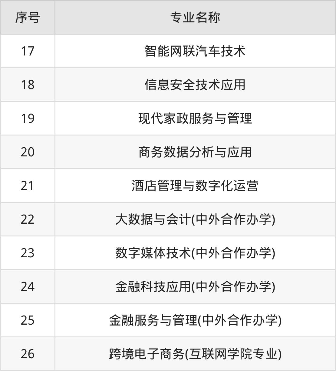 历史类(文科)本科招生专业:建筑设计、电子商务、现代物流管理、大数据与会计、金融科技应用、国际经济与贸易。