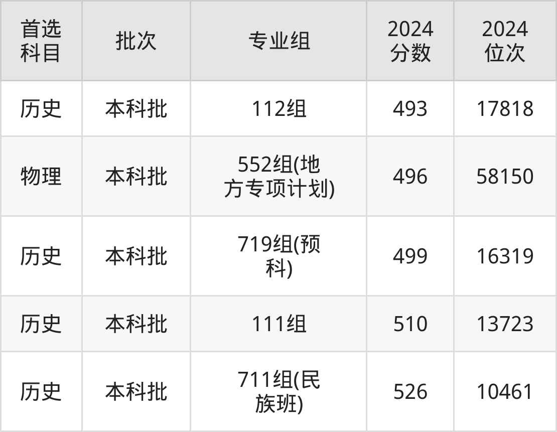 从2024年广西民族大学在广西壮族自治区内的录取分数线来看,本科批录取分数线都在420分以上,录取分数线最高的是711组(民族班),2024年最低分为526分;录取分数线最低的是163组,2024年最低分为420分。