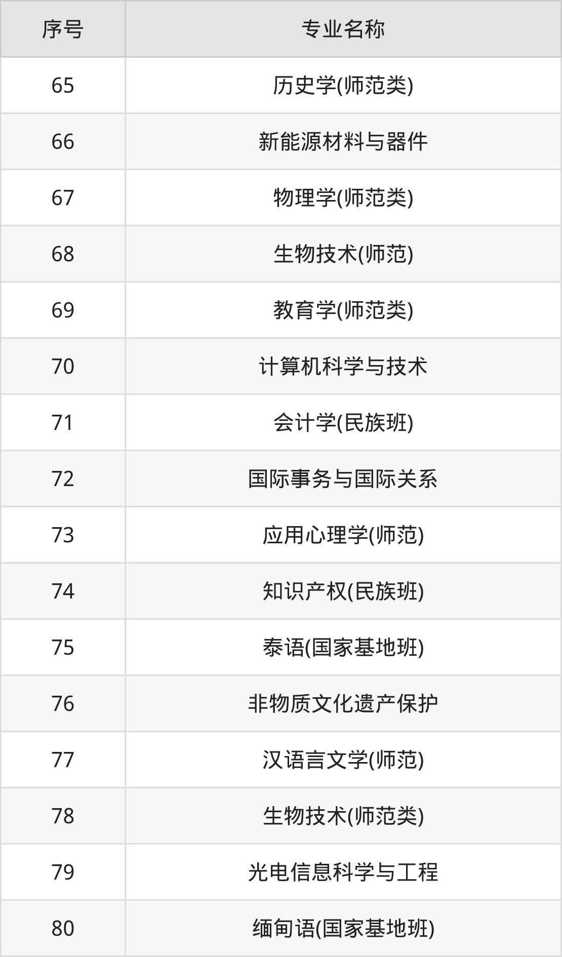 历史类(文科)本科招生专业:英语、翻译、法语、法学、会计学、档案学、民族学、历史学、缅甸语、老挝语等。