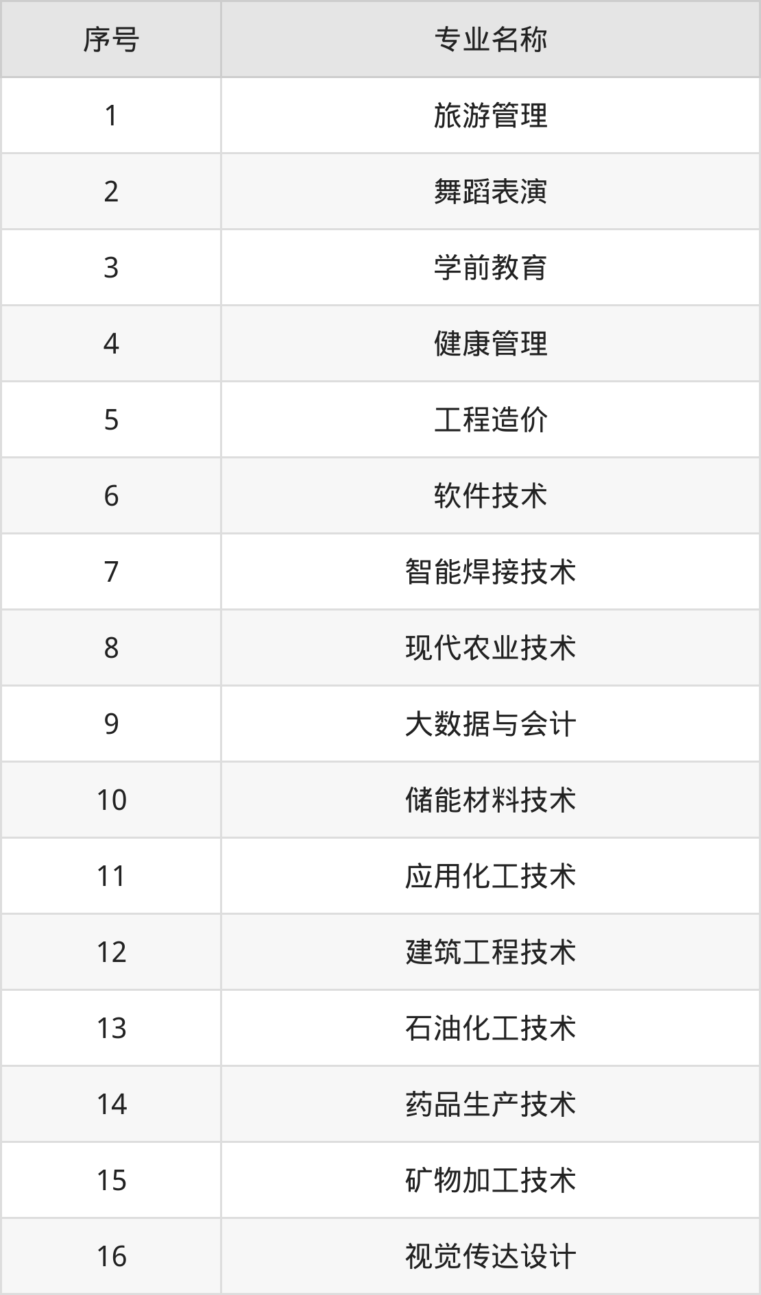 目前,甘肃有色冶金职业技术学院公布了2024年专科招生专业,共34个。