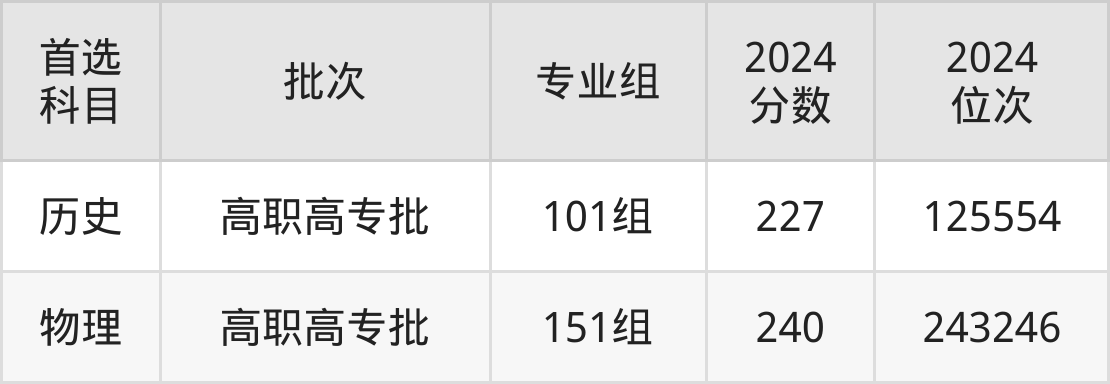 2024年福州英华职业学院在广西壮族自治区内专科批的录取分数线都在220分以上,在历史类的录取分数线为227分;物理类的录取分数线为240分。