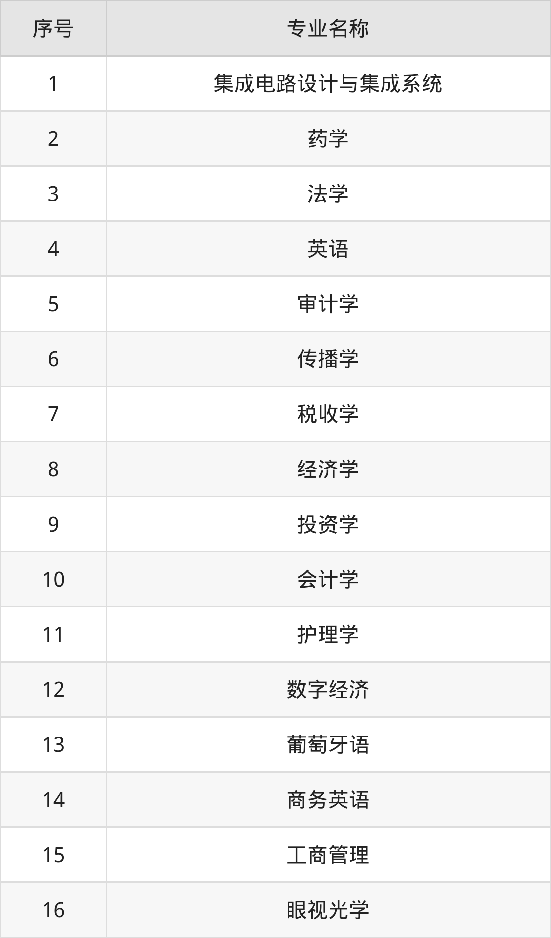 物理类(理科)本科招生专业:集成电路设计与集成系统、药学、英语、法学、护理学、经济学、投资学、税收学、传播学、会计学等。