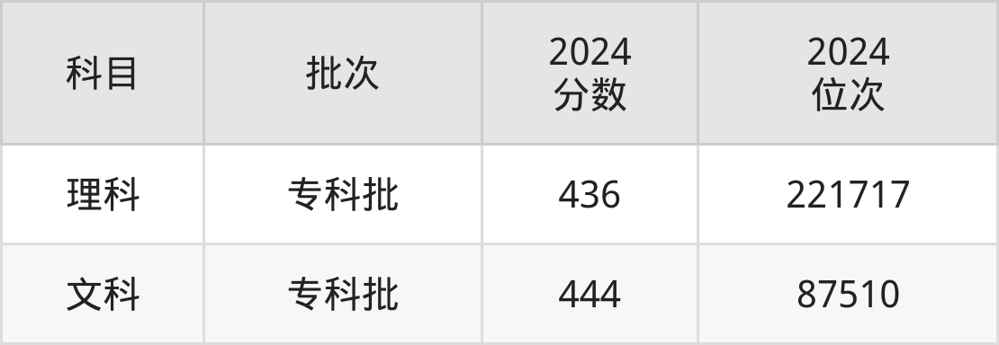 2024年达州职业技术学院在四川省内专科批的录取分数线都在430分以上,在文科的录取分数线为444分;理科的录取分数线为436分。