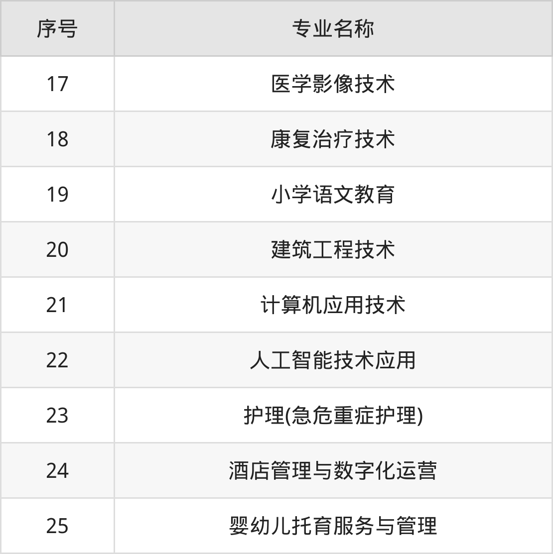 目前,达州职业技术学院公布了2024年专科招生专业,共25个。