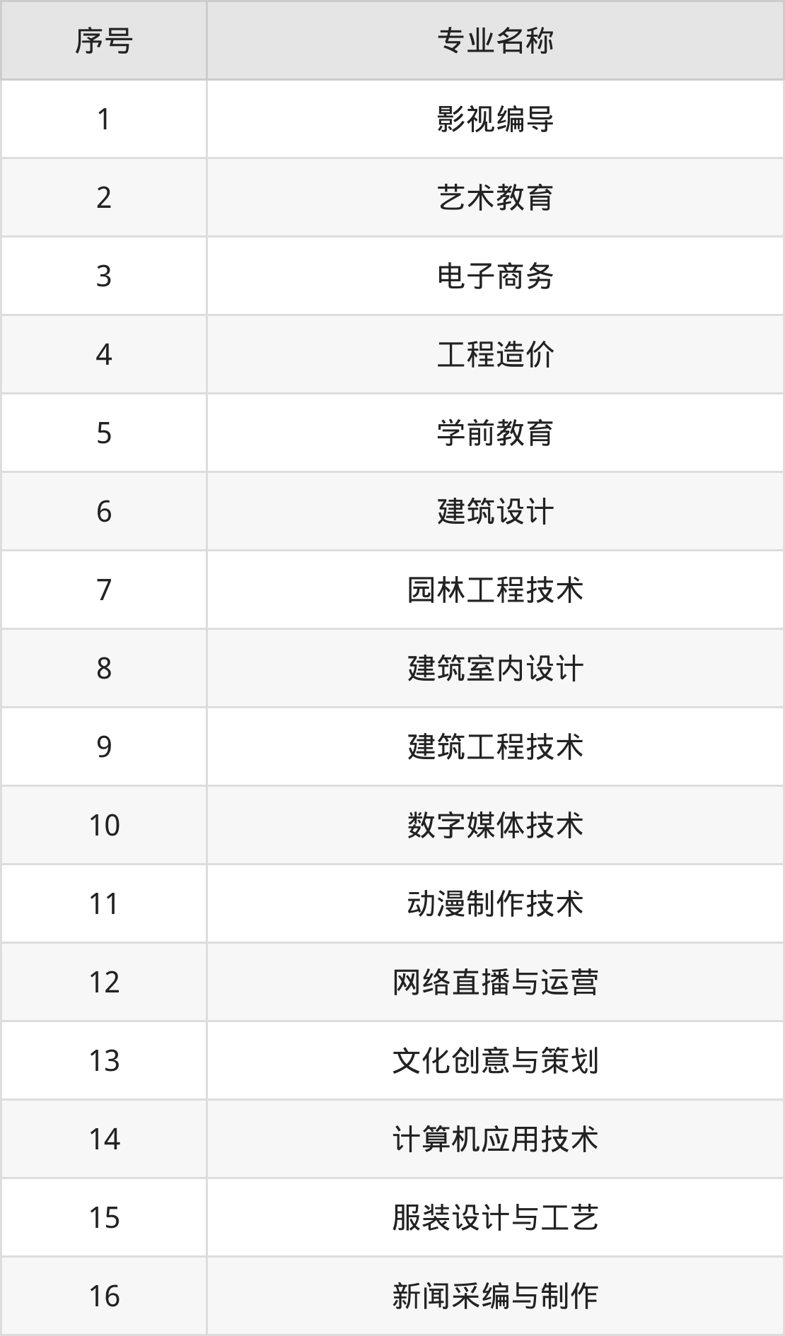 目前,成都艺术职业大学公布了2024年本科招生专业,共9个;2024年专科招生专业为18个。
