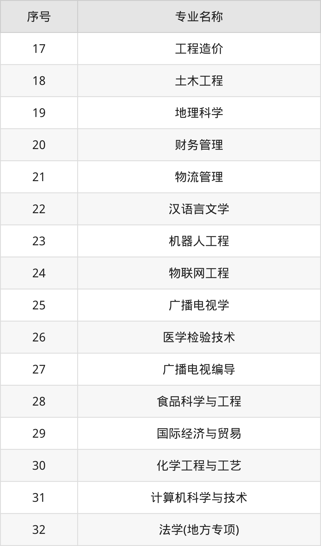 本科招生专业: