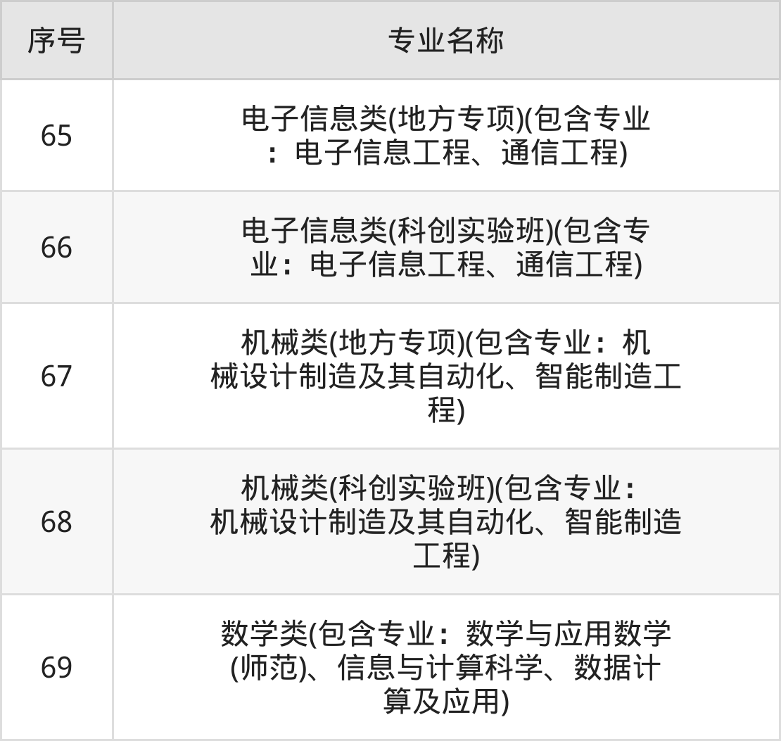 物理类(理科)本科招生专业:法学、英语、日语、化学、护理学、建筑学、自动化、物理学、车辆工程、人工智能等。