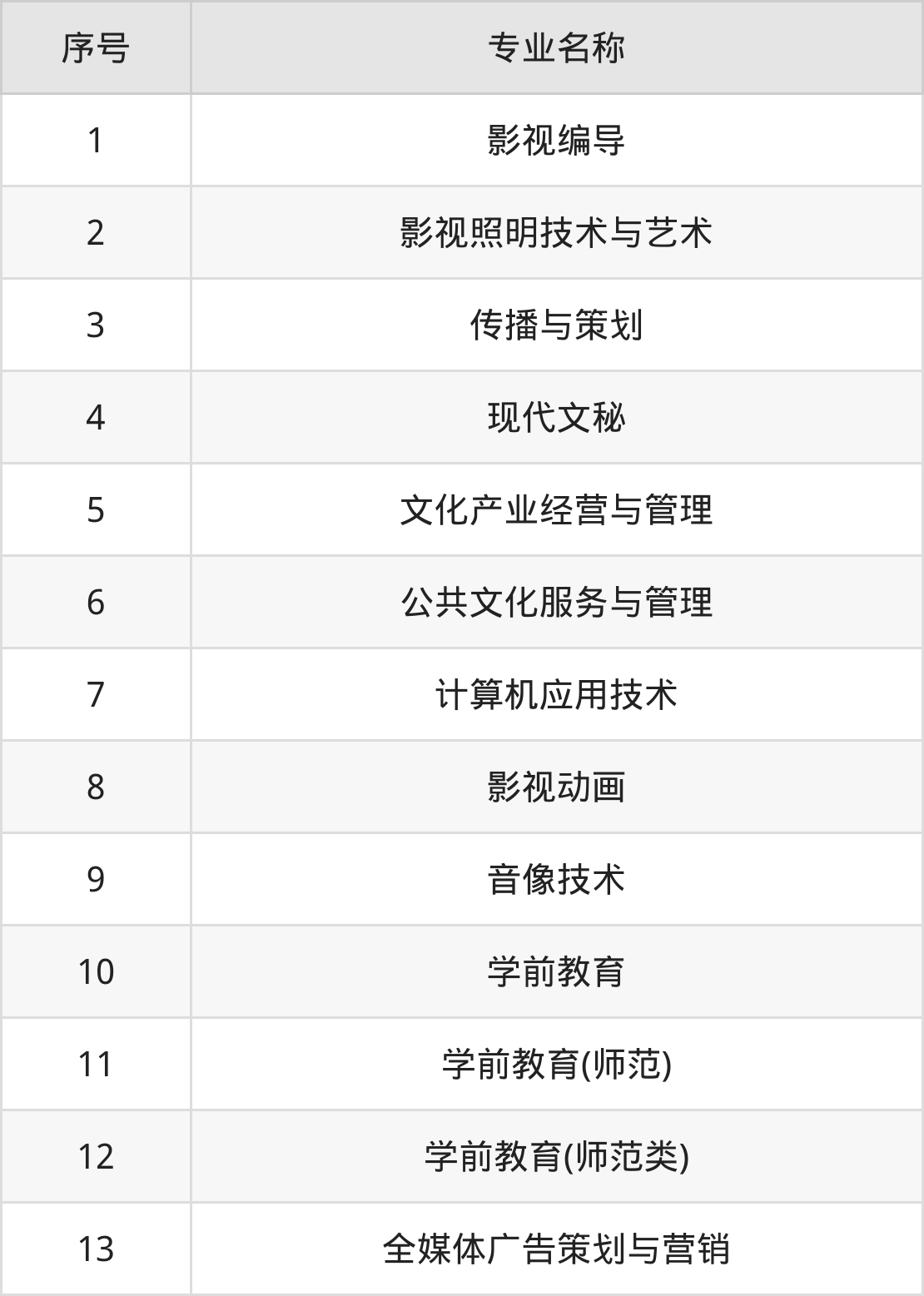 目前,广东艺术职业学院公布了2024年专科招生专业,共13个。