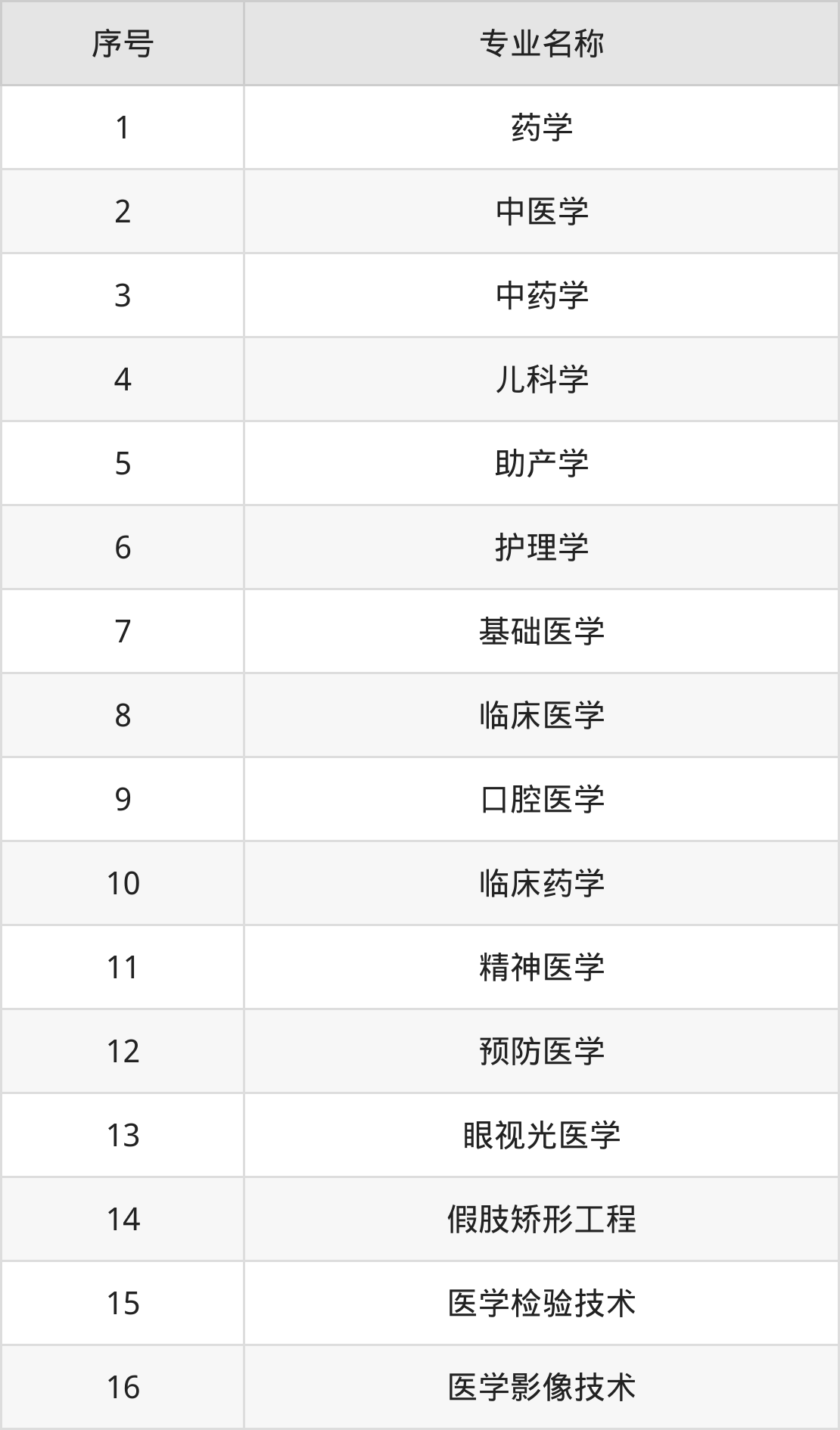 物理类(理科)本科招生专业:药学、护理学、中药学、中医学、儿科学、基础医学、临床药学、口腔医学、临床医学、预防医学等。