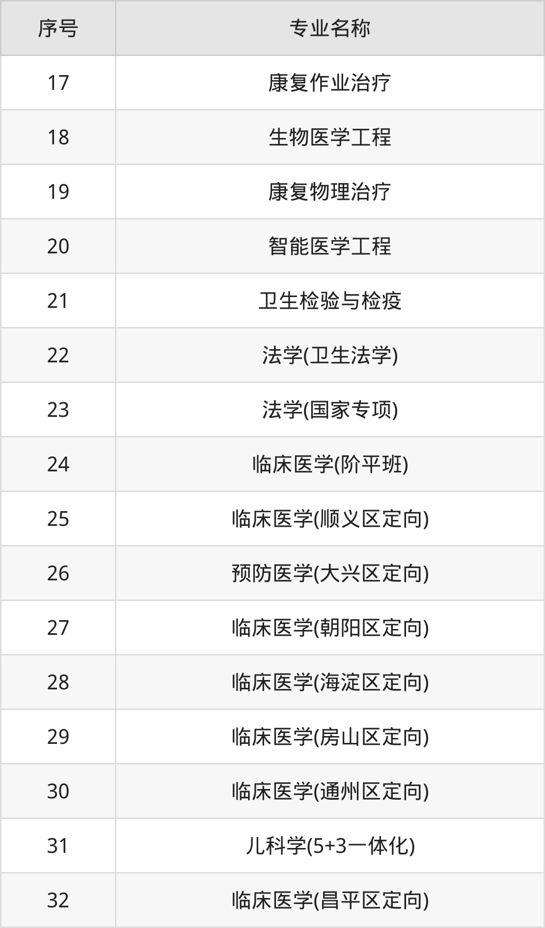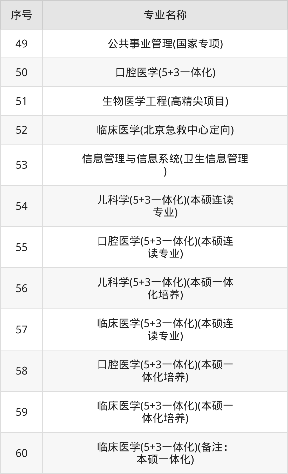 目前,首都医科大学公布了2024年本科招生专业,共60个。