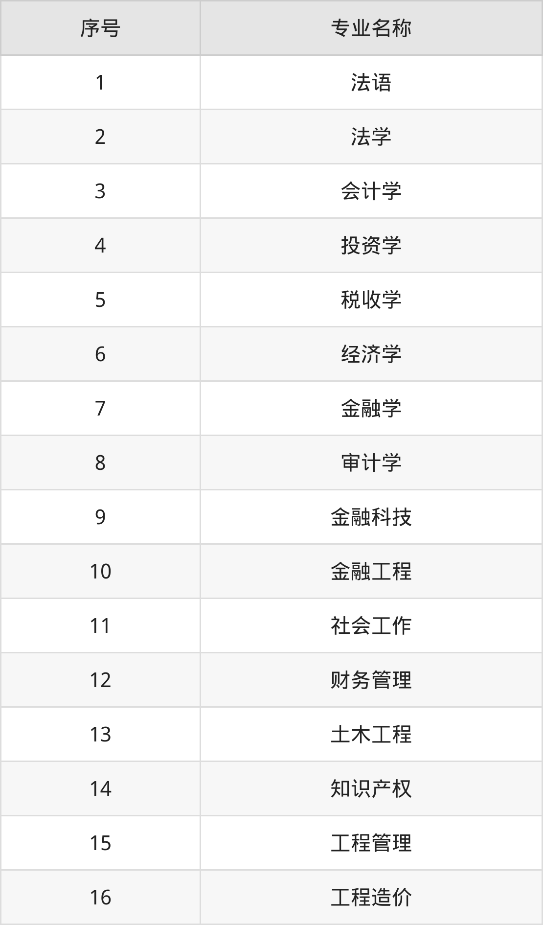 物理类(理科)本科招生专业:法学、法语、审计学、金融学、税收学、投资学、会计学、经济学、金融科技、知识产权等。