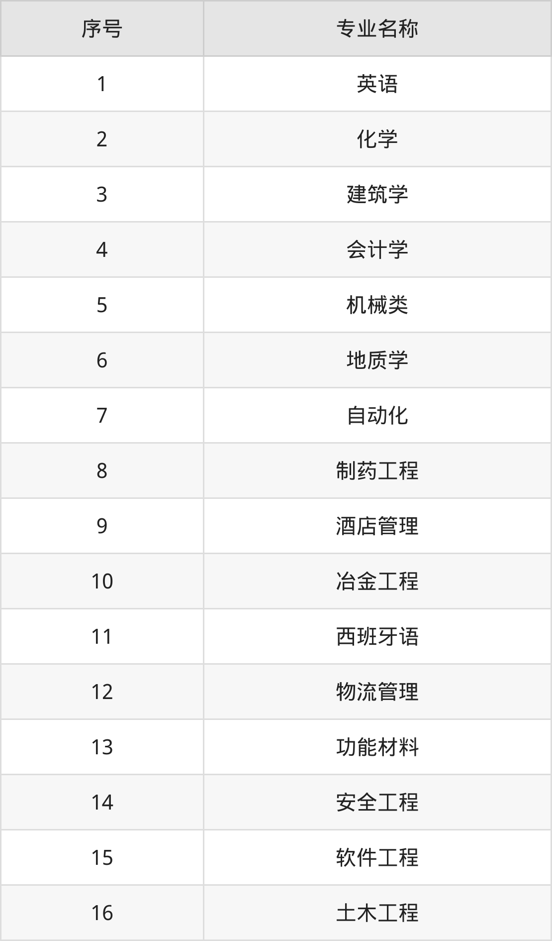 物理类(理科)本科招生专业:化学、英语、自动化、机械类、地质学、建筑学、会计学、物流管理、西班牙语、冶金工程等。