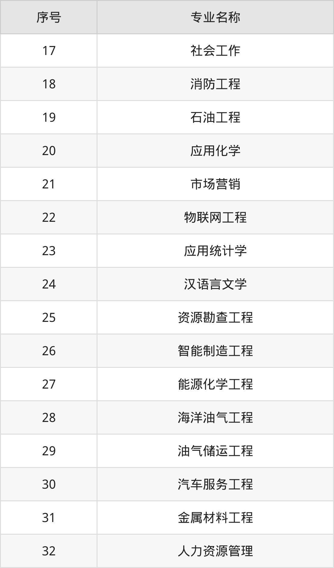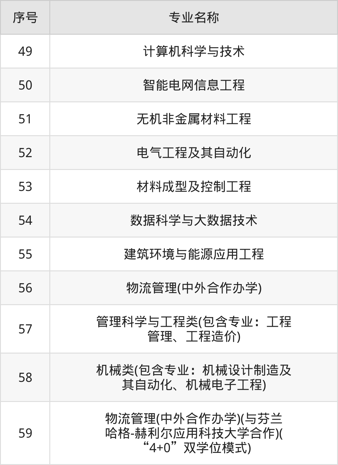 目前,重庆科技大学公布了2024年本科招生专业,共59个。