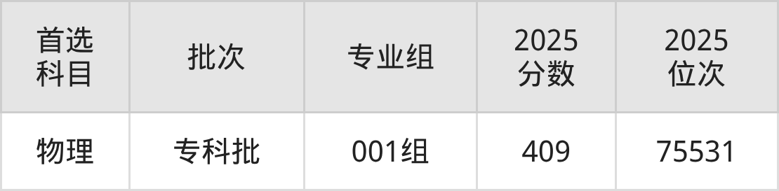 2025年西安电力高等专科学校在甘肃省内专科批的录取分数线都在400分以上,在物理类的录取分数线为409分。