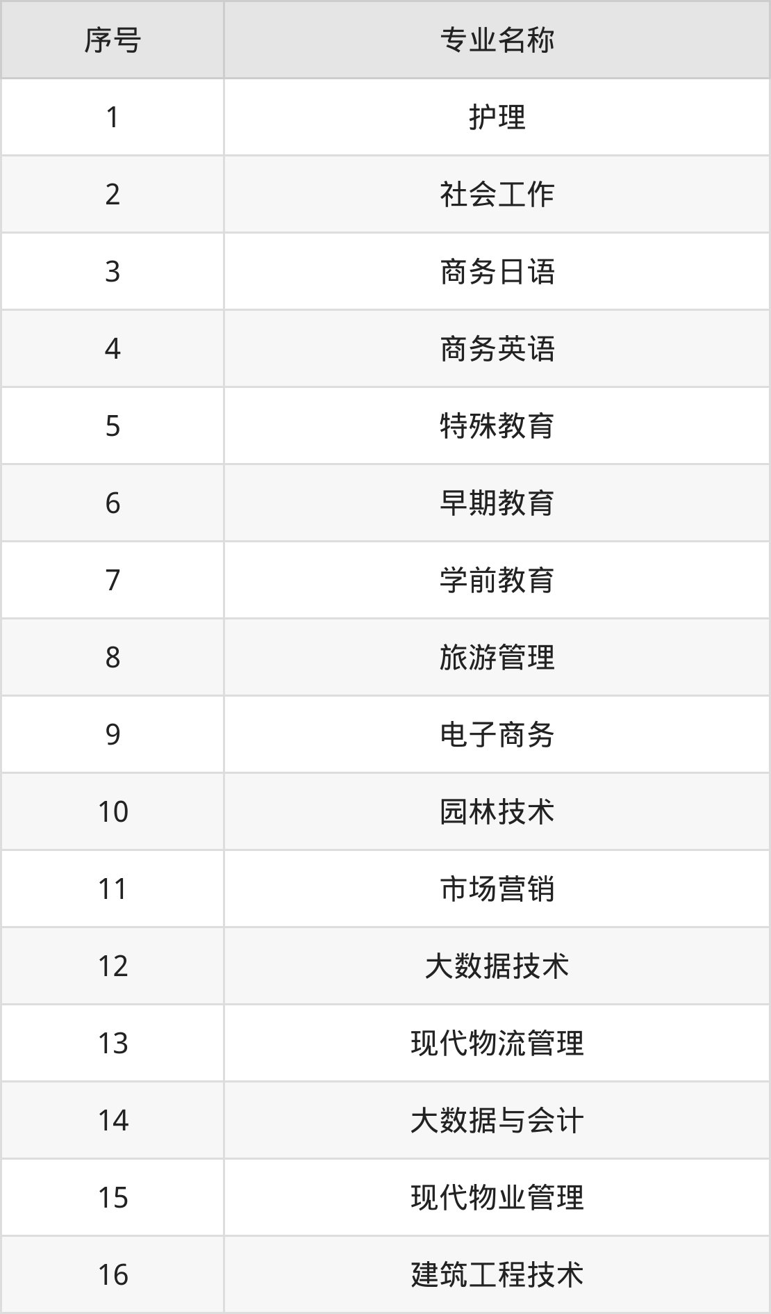 专科招生专业: