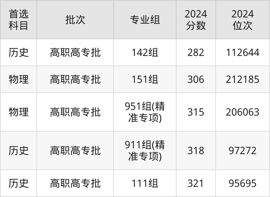 2024年广西生态工程职业技术学院在广西壮族自治区内专科批的录取分数线都在280分以上,在历史类的录取分数线在282分-321分之间;物理类的录取分数线在306分-315分之间。