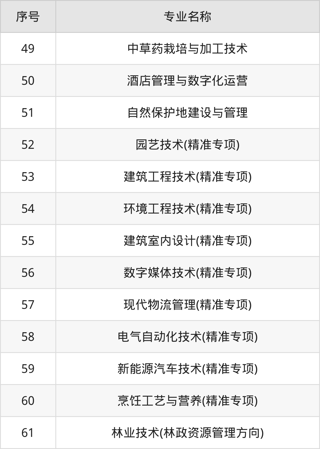目前,广西生态工程职业技术学院公布了2024年专科招生专业,共61个。