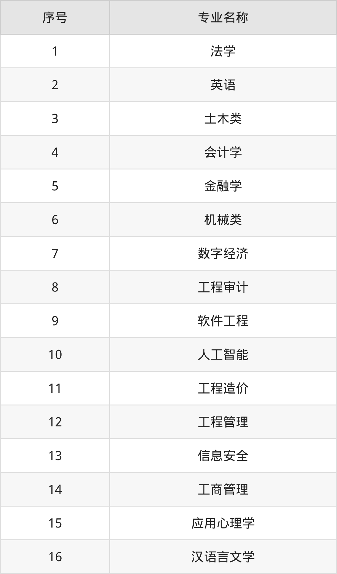 目前,重庆城市科技学院公布了2025年本科招生专业,共45个。