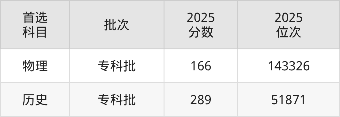 2025年大连汽车职业技术学院在辽宁省内专科批的录取分数线都在160分以上,在历史类的录取分数线为289分;物理类的录取分数线为166分。