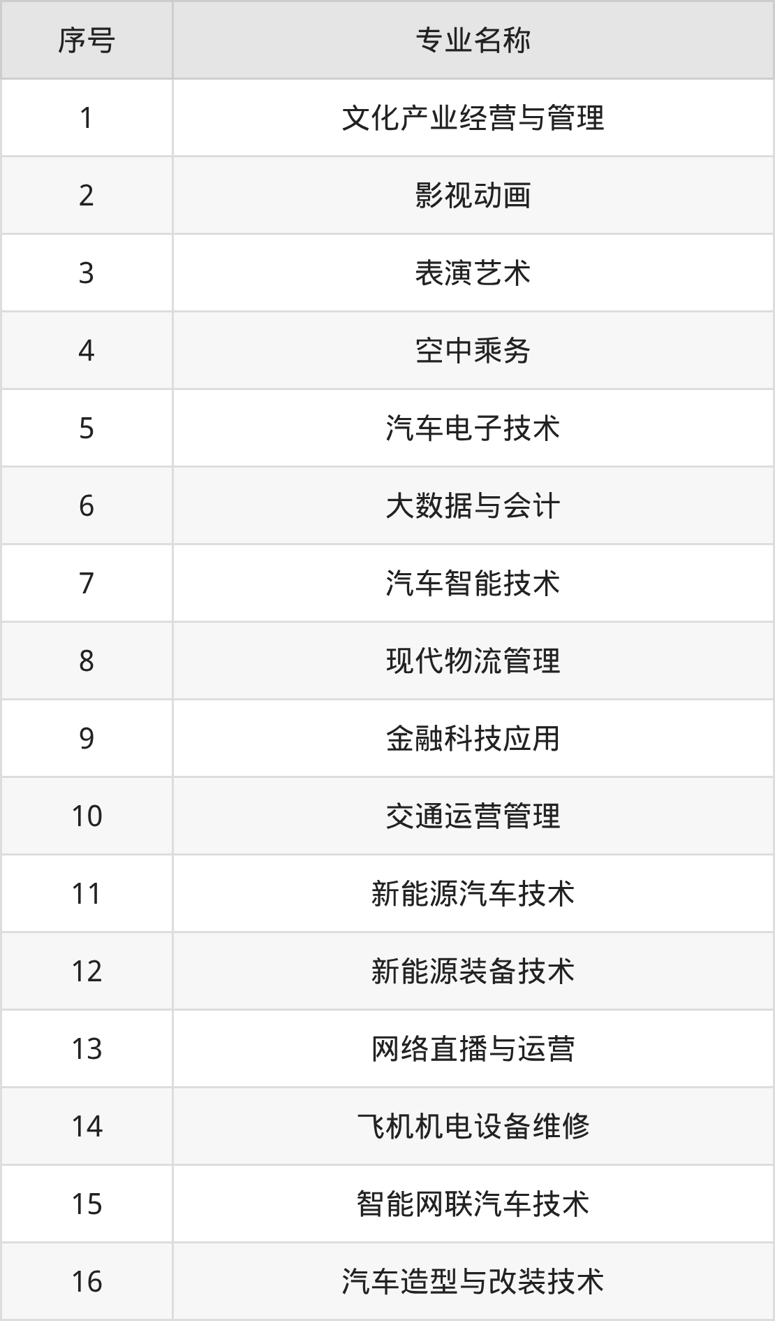 目前,大连汽车职业技术学院公布了2025年专科招生专业,共19个。