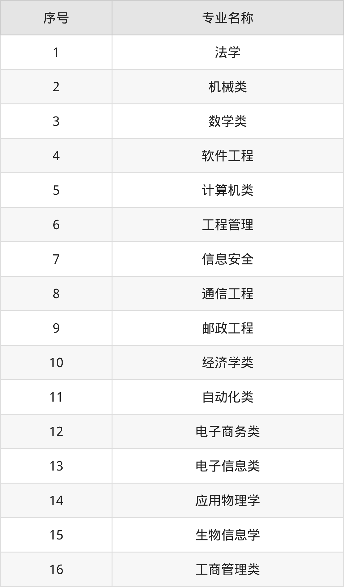 物理类(理科)本科招生专业:法学、机械类、数学类、计算机类、自动化类、经济学类、软件工程、通信工程、信息安全、工程管理等。