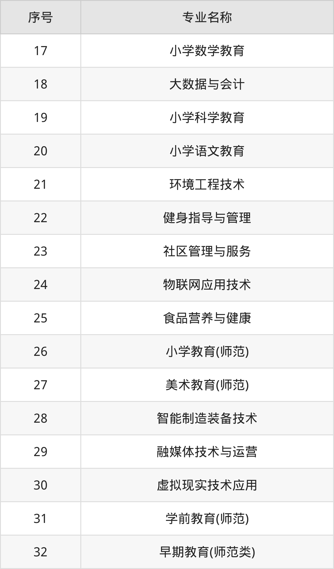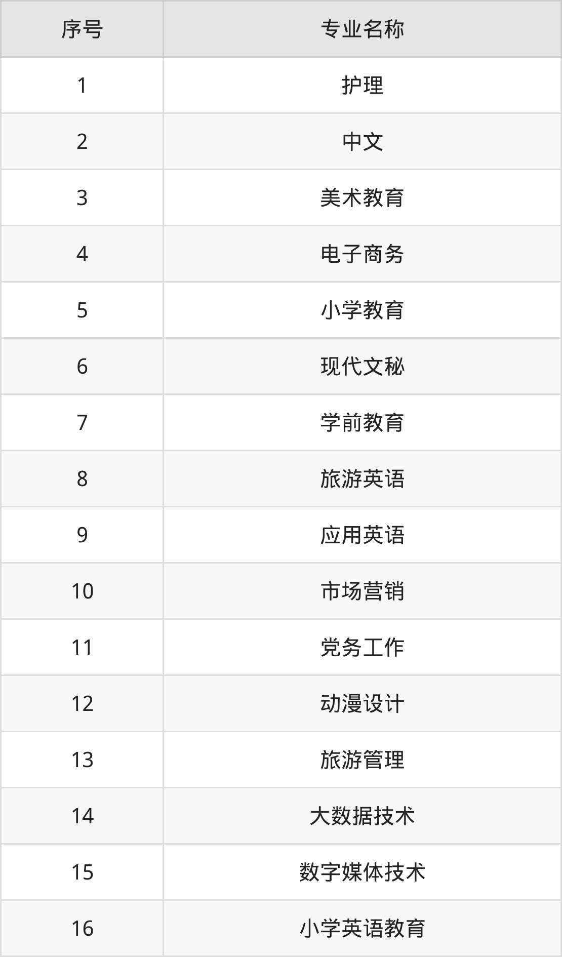 专科招生专业: