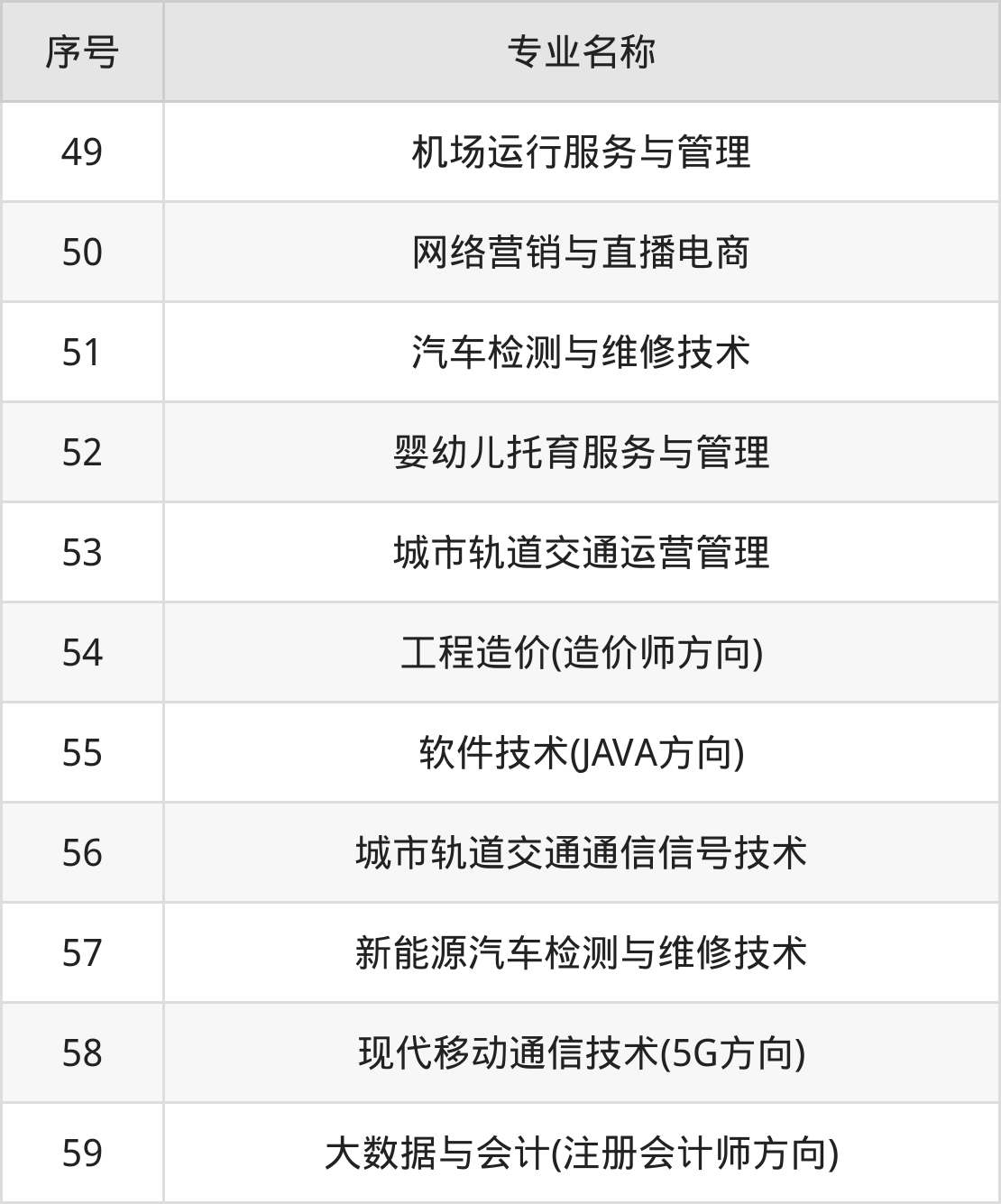 目前,石家庄科技信息职业学院公布了2024年专科招生专业,共59个。