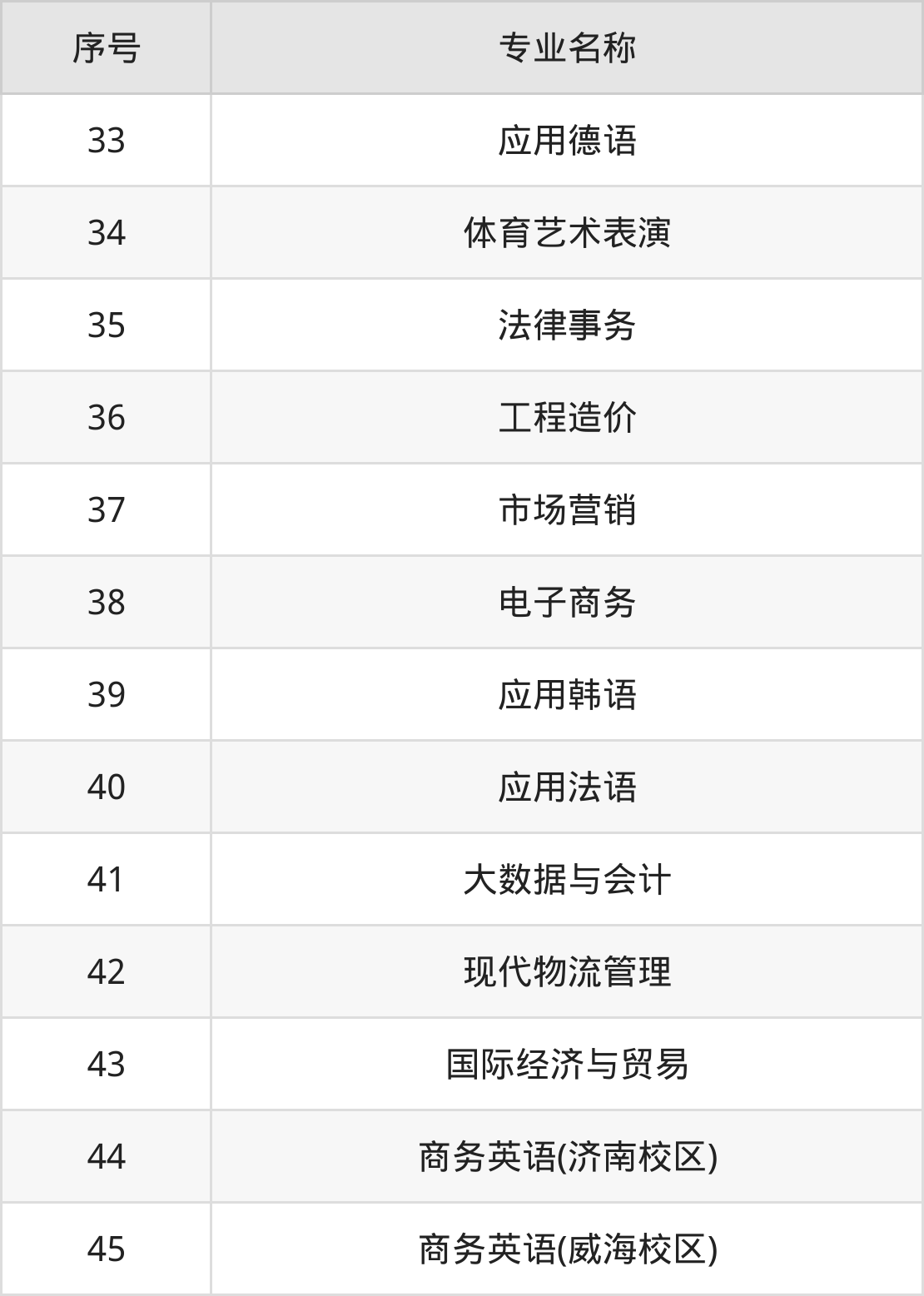 目前,山东外事职业大学公布了2024年本科招生专业,共45个;2024年专科招生专业为23个。