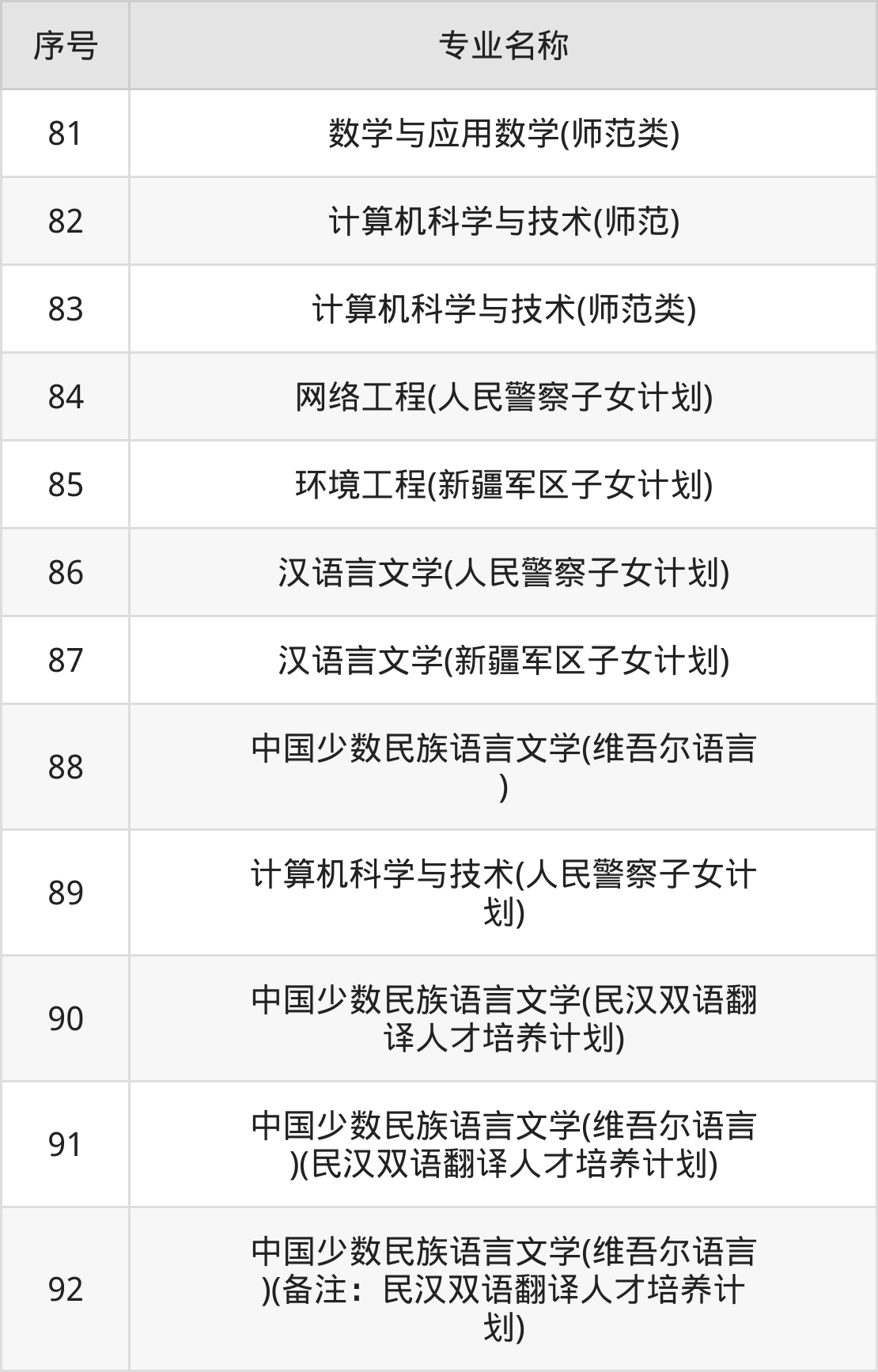 目前,新疆师范大学公布了2024年本科招生专业,共92个。